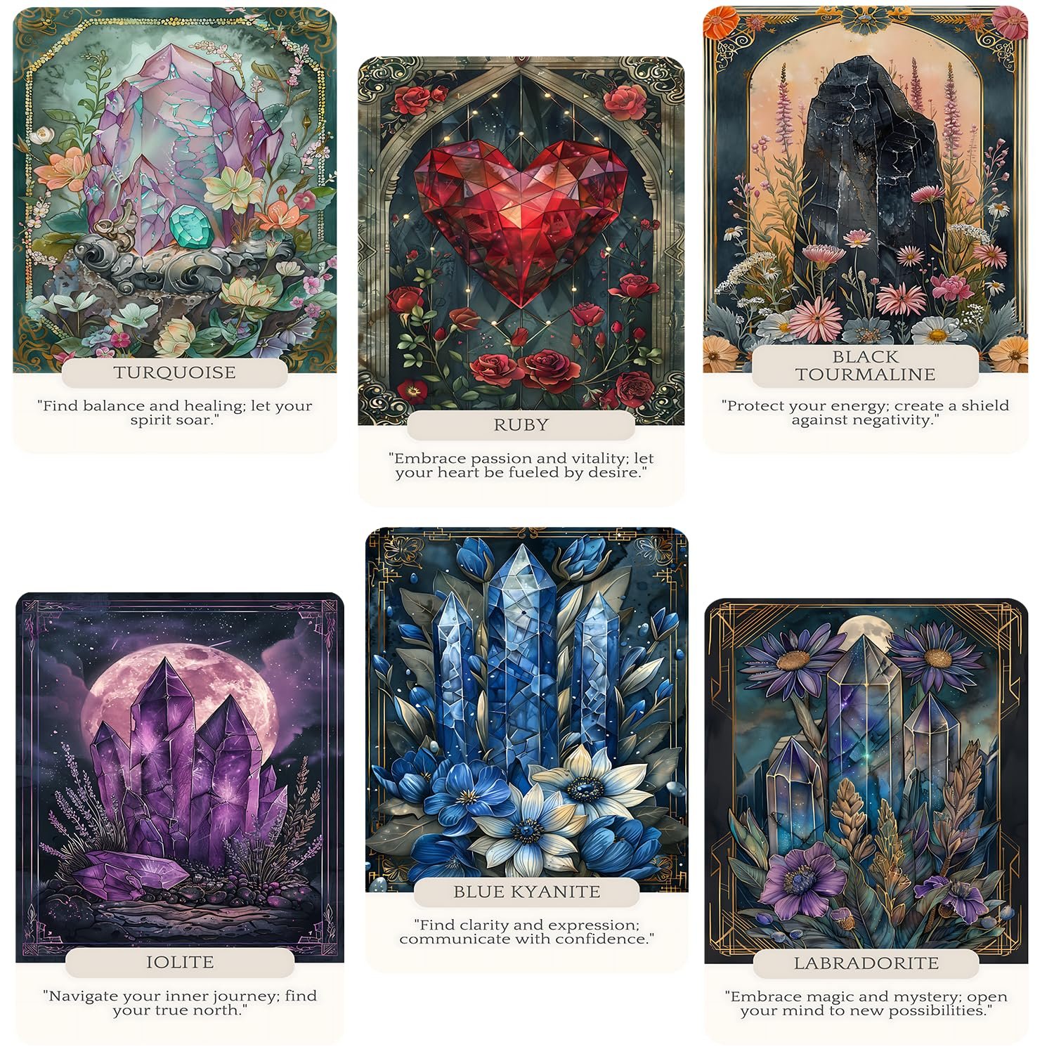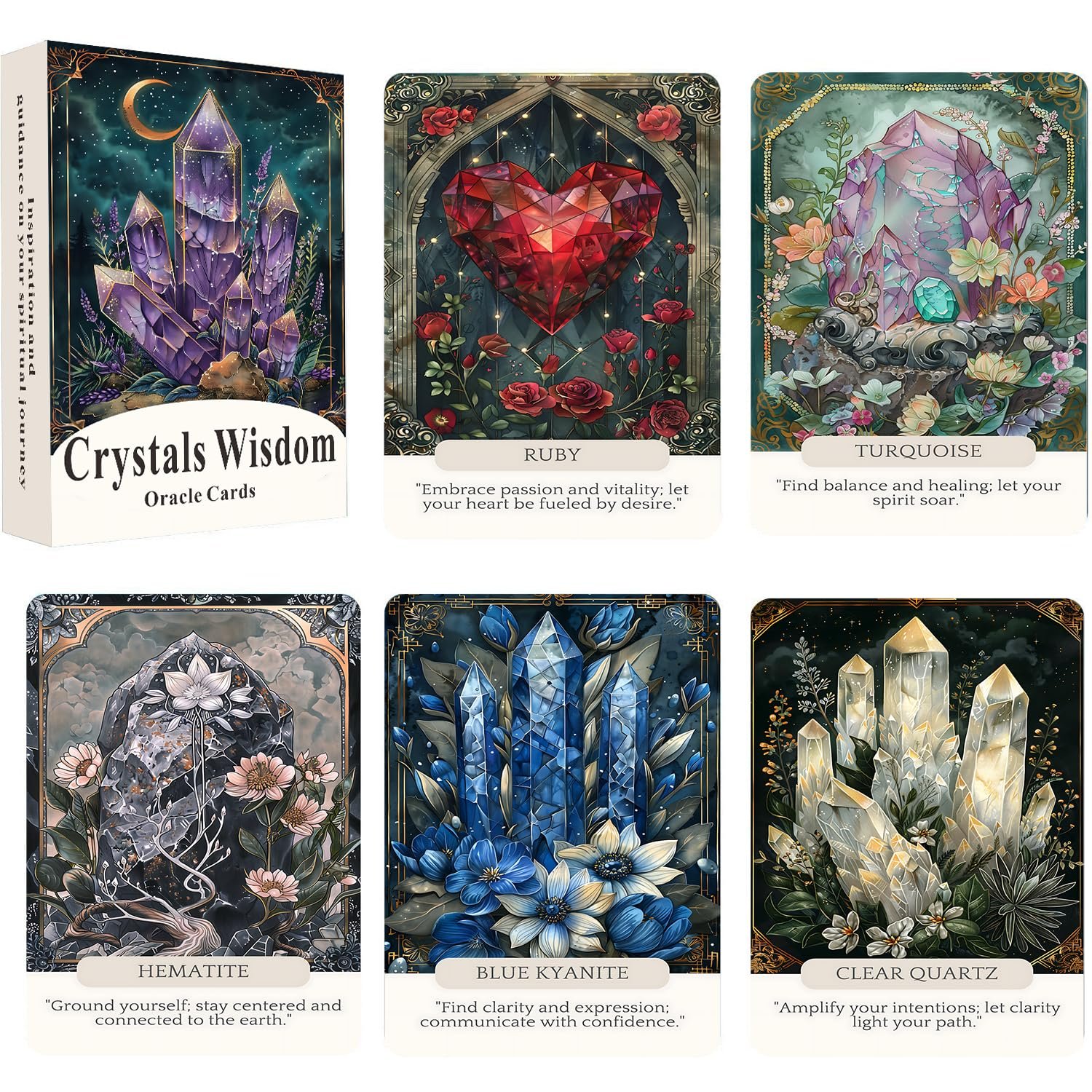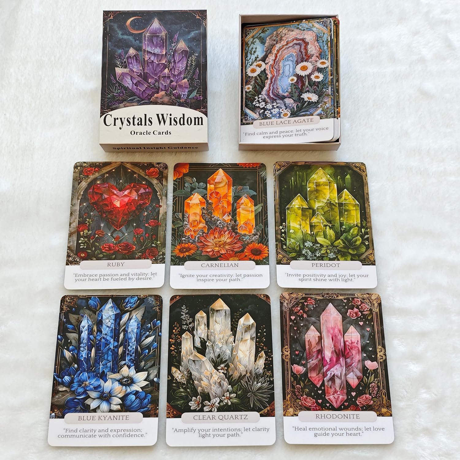 - 【44 Oracle Cards】 Exquisite crystal-themed designs to inspire and guide. Enhance your cards or use them for other creative projects. Daily Use: Incorporate these oracle cards into your daily routine for spiritual insight and guidance. Spiritual Practice: Enhance your spiritual practices with the wisdom of these oracle cards.