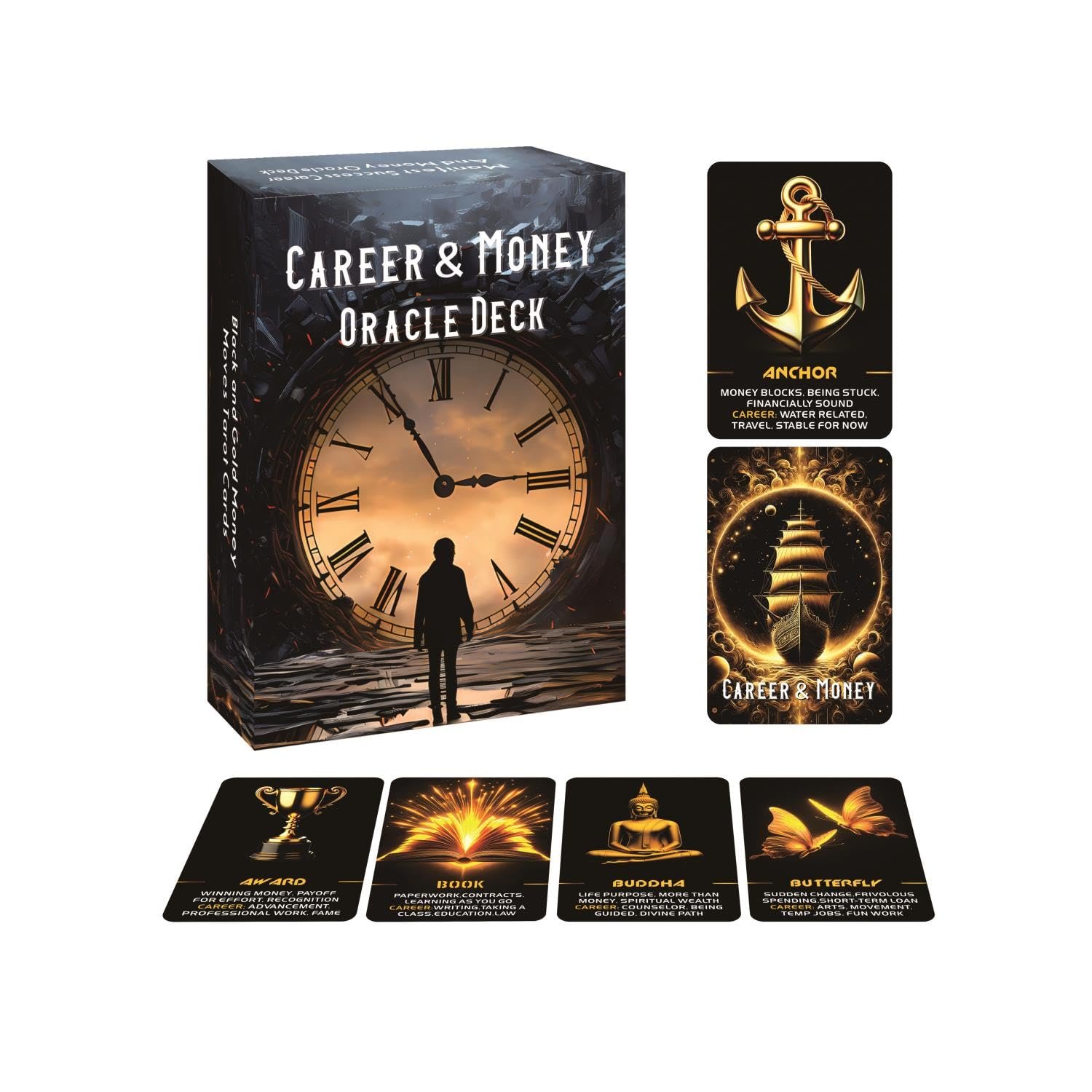 I love these . They are beautiful black and gold. I love the sizes wider than average card. I’ve used them a few times for readings and they loved them also . I’m new to card reading still but the words on it help me to use my intuition for the rest and then too . Thanks for suc a beautiful deck. My favorite so far.