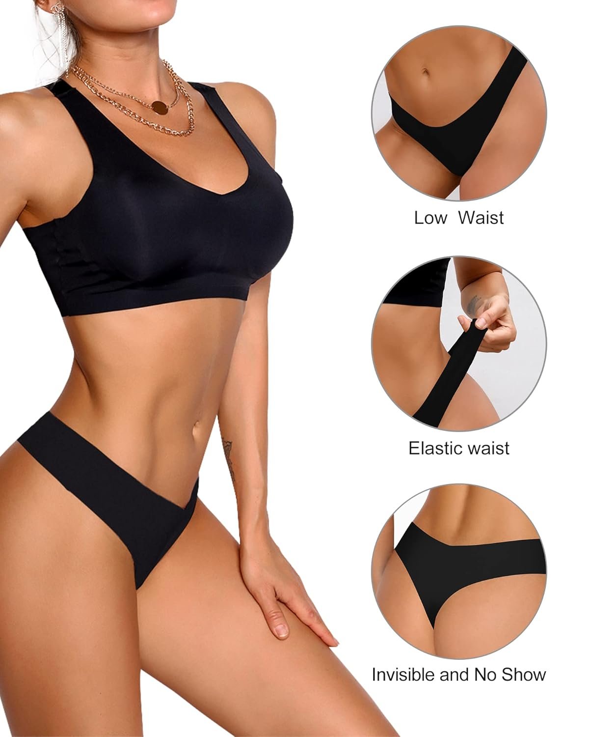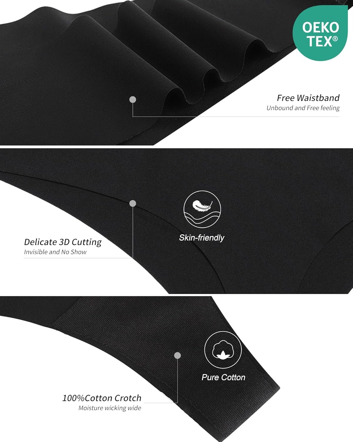 - DESIGN:Low waist,ultra stretchy seamless panties thong with cotton liner.Tag-less design and seamless eliminates chafing or pinching while minimizing no show panties lines.