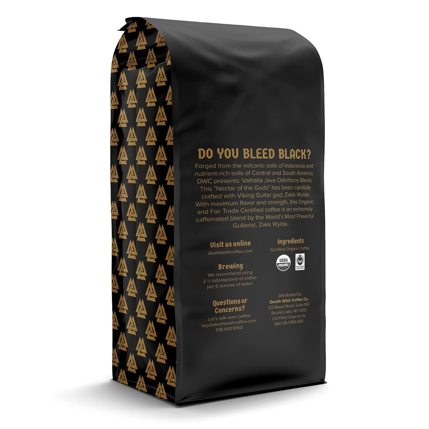 Death Wish Coffee Valhalla Java Dark Roast Ground Coffee, 12 Oz, Bold & Intense Blend of Arabica Robusta Beans, USDA Organic