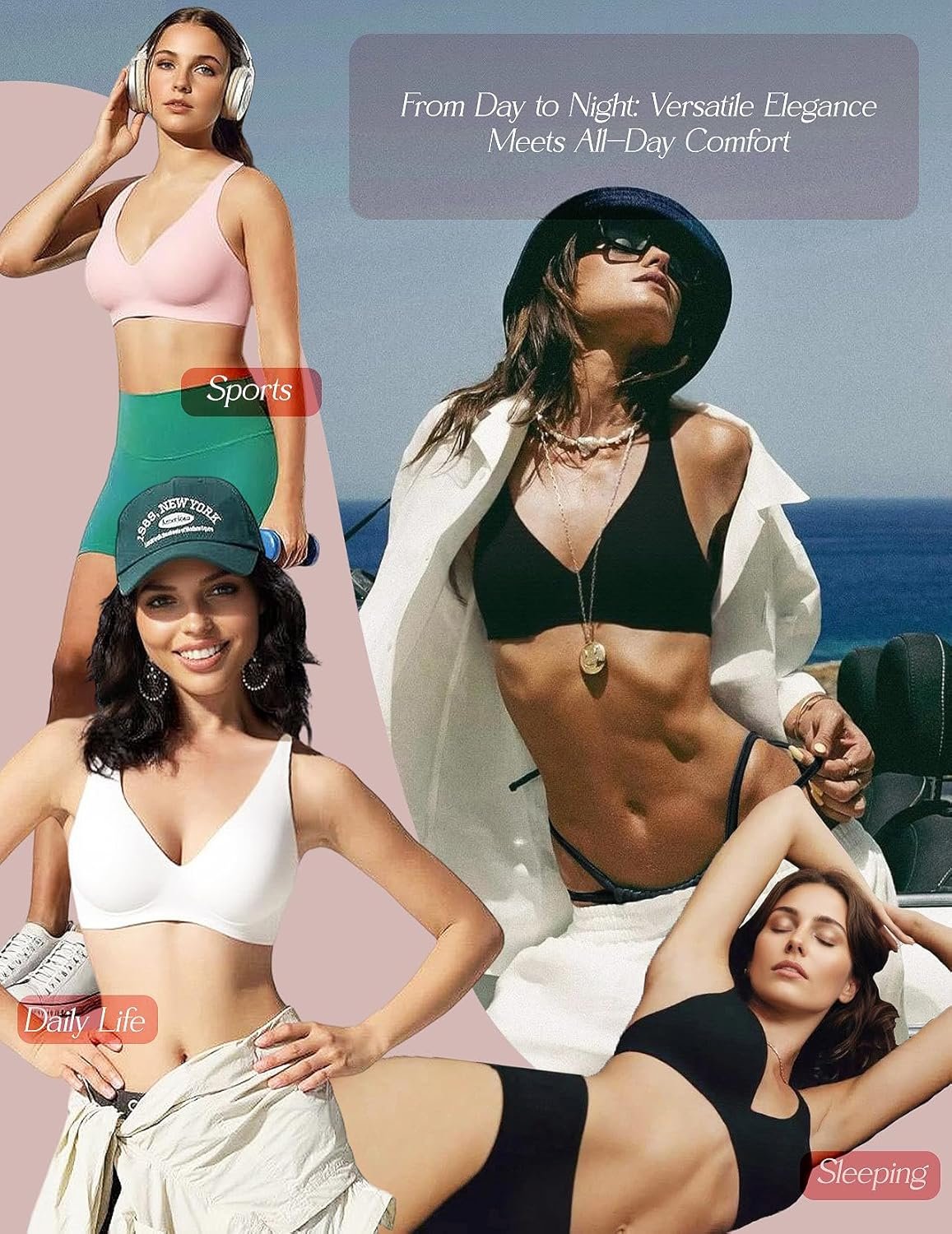 - Ultra Soft and Smooth Bralette – Our wireless bra is super soft and stretch. The side fabric is lightweight and breathable, and the hem won’t roll or move up. The breathable fabric keeps you cool and comfortable for 24h, while zero pressure gives you a barely-there feeling