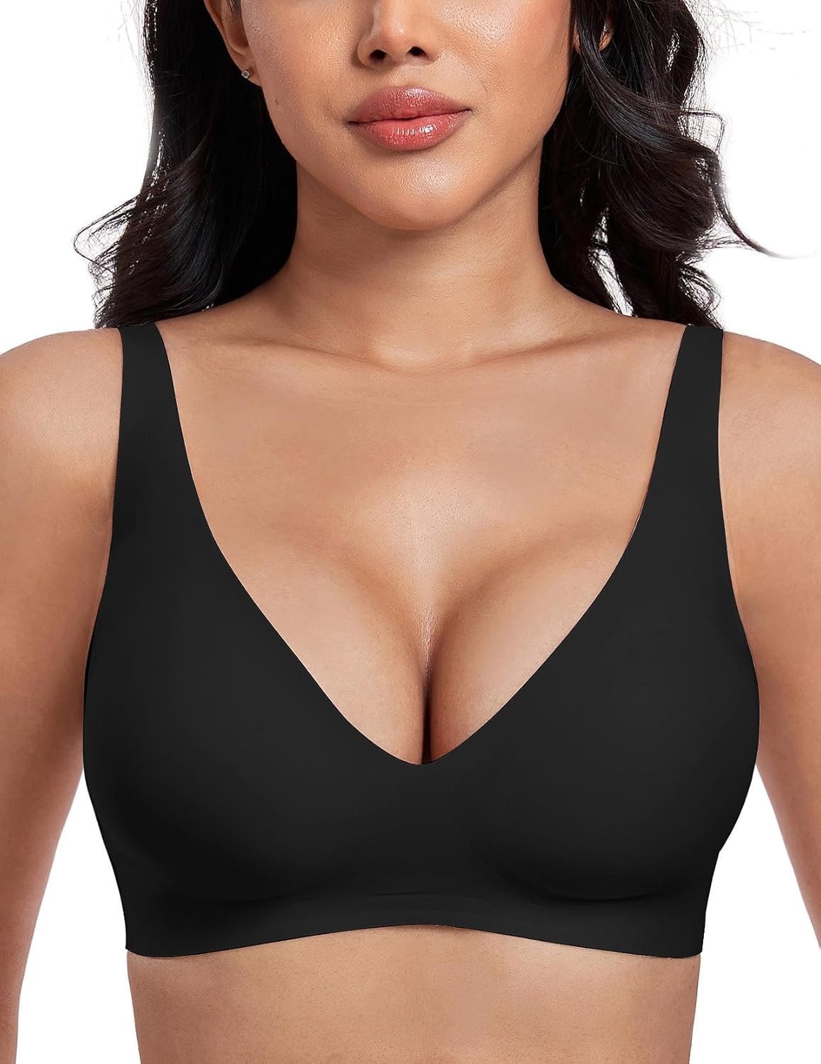 8 reviews for Deep V Bras for Women No Underwire Seamless Bralettes for Women Wireless Plunge T Shirt Bra with Extender