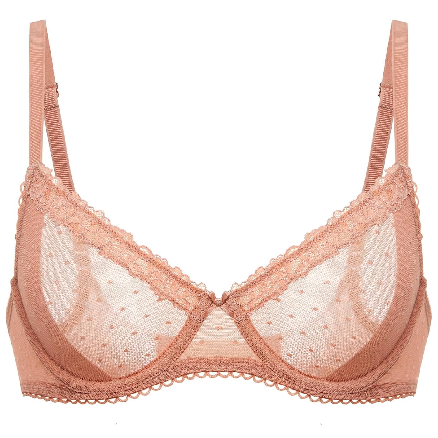 DOBREVA Women’s Balconette Lace Bra See Through Demi Sheer Mesh Plus Size Underwire