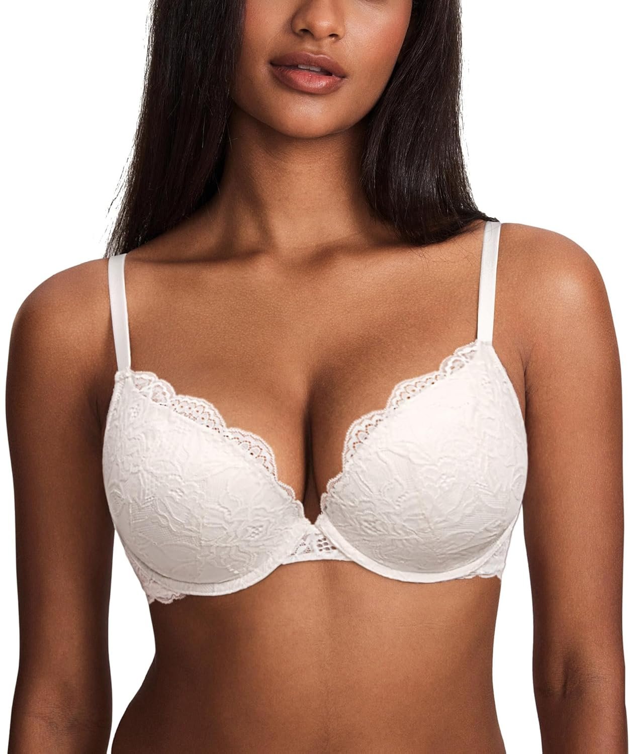DOBREVA Women’s Push Up Lace Bra Underwire Plunge Full Coverage Bras Sexy Plus Size Support