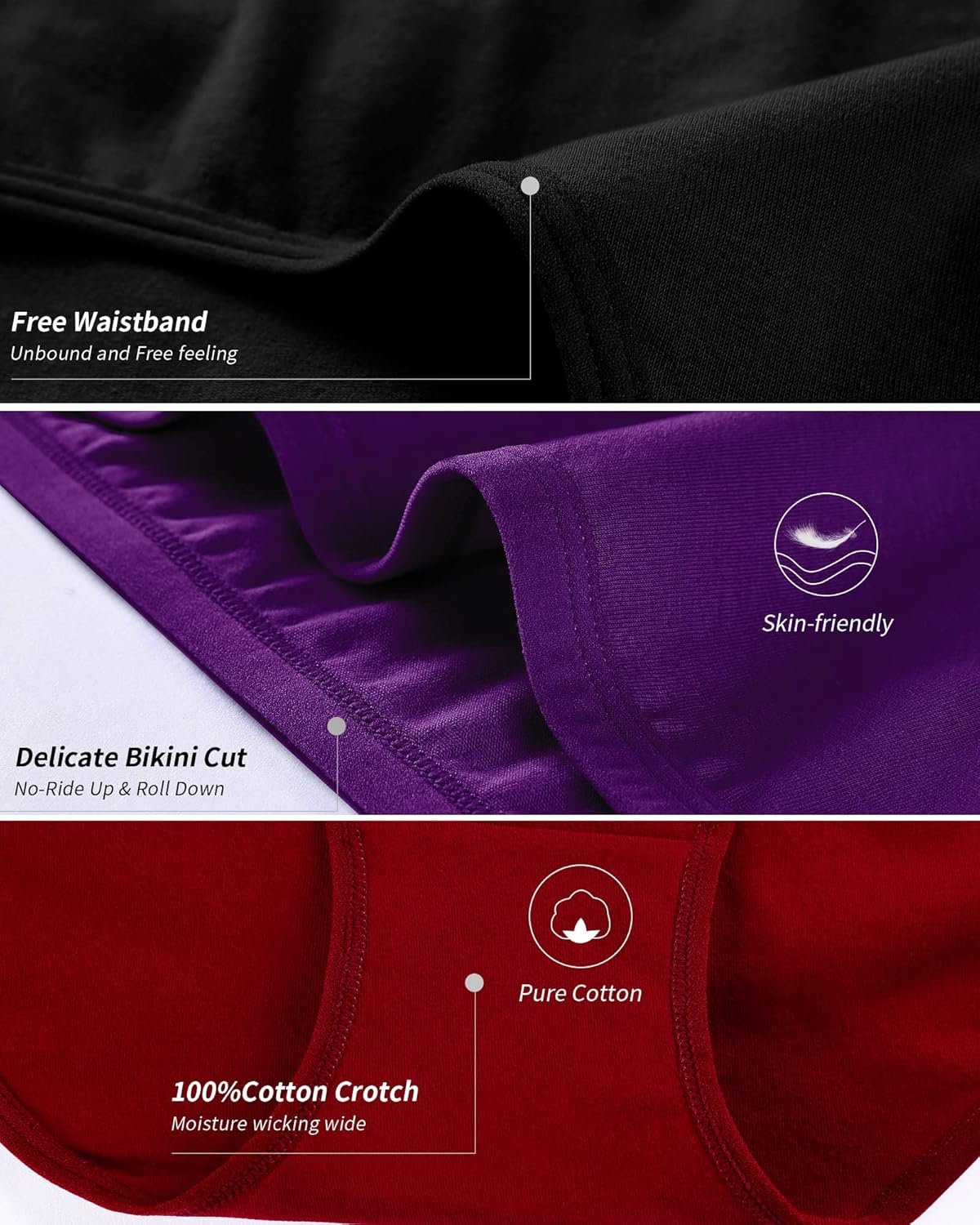 - NO SHOW UNDERWEAR:The thin flat and stretchy elastic waistband offer a smooth appearance for seamless underwear. No sagging, no binding or pilling. Cotton bikini underwear women are a fantastic mother, girlfriend, and wife