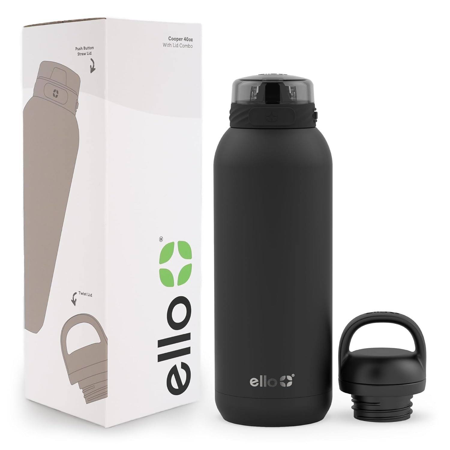 34 reviews for Ello Cooper Twist 40oz Stainless Steel Water Bottle with Chug Lid | Leak Proof | Double Walled and Vacuum Insulated | Built in Carry Loop | Dishwasher Safe | White
