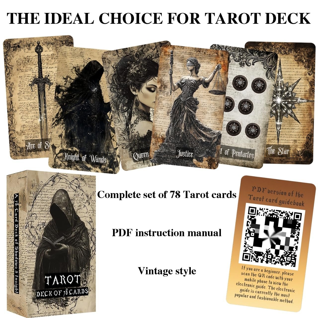 Eternal Whisper Tarot Deck, 78 Tarot Cards with PDF Guidebook, Vintage Gothic Style, Parchment Theme, Modern Witch Tarot for Beginners- Experienced Readers, Divination Spiritual…