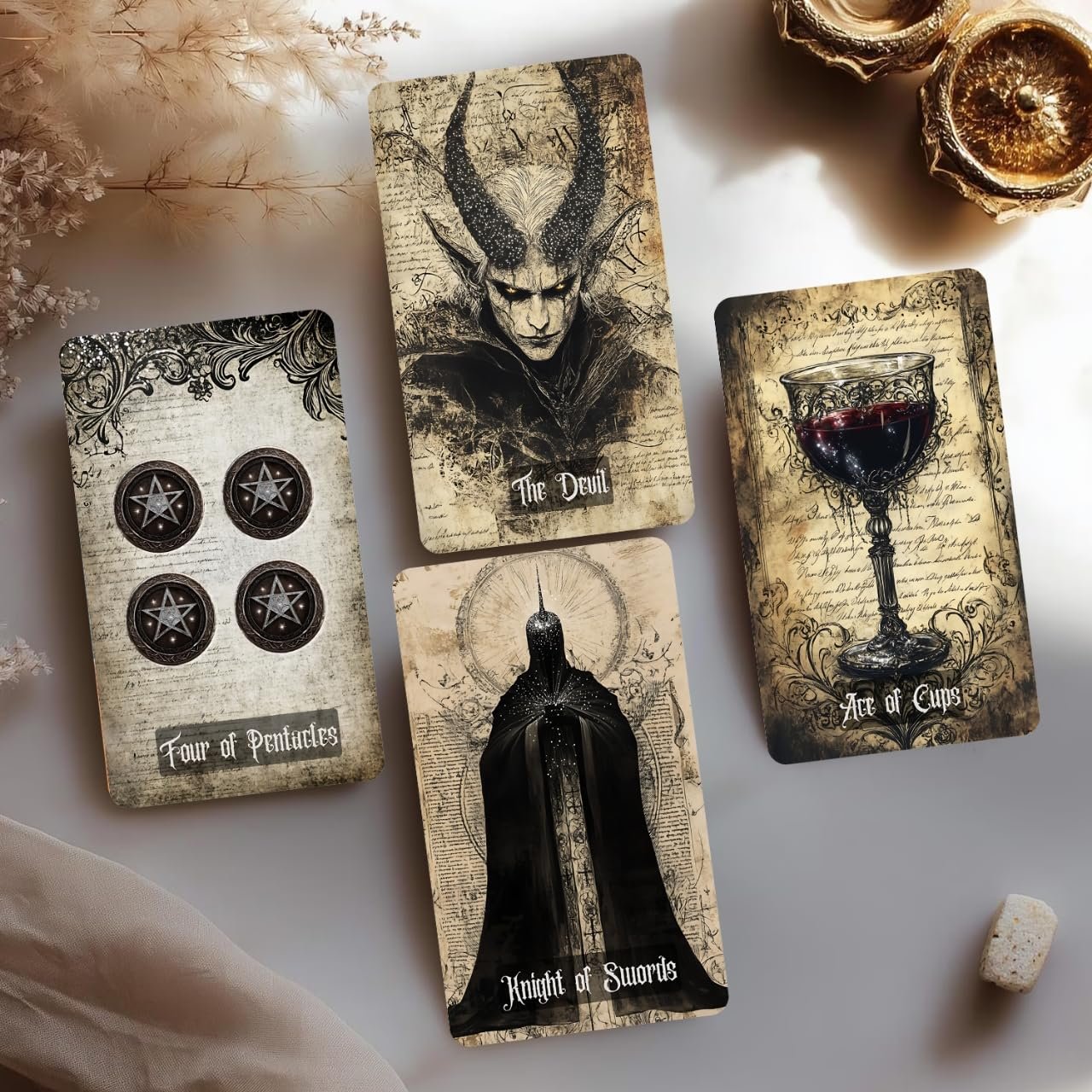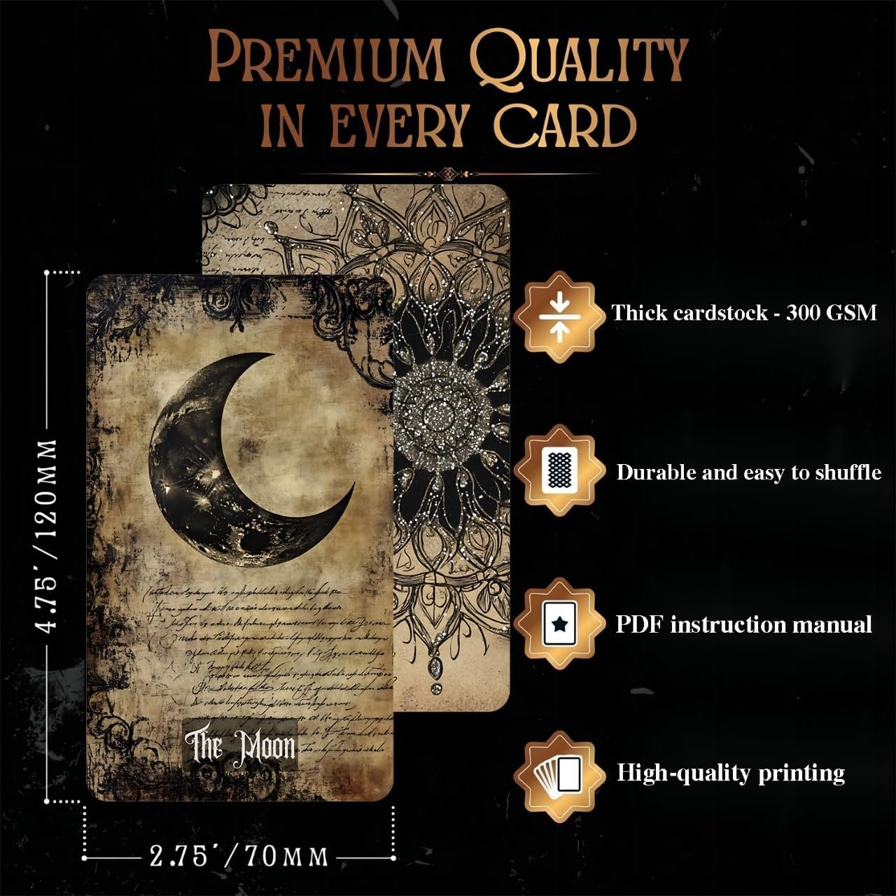 - VINTAGE GOTHIC AESTHETIC: Rendered in a textured world of ink, parchment, and starlit shadows, each card blends artistic darkness with emotional clarity for a hauntingly beautiful divination experience