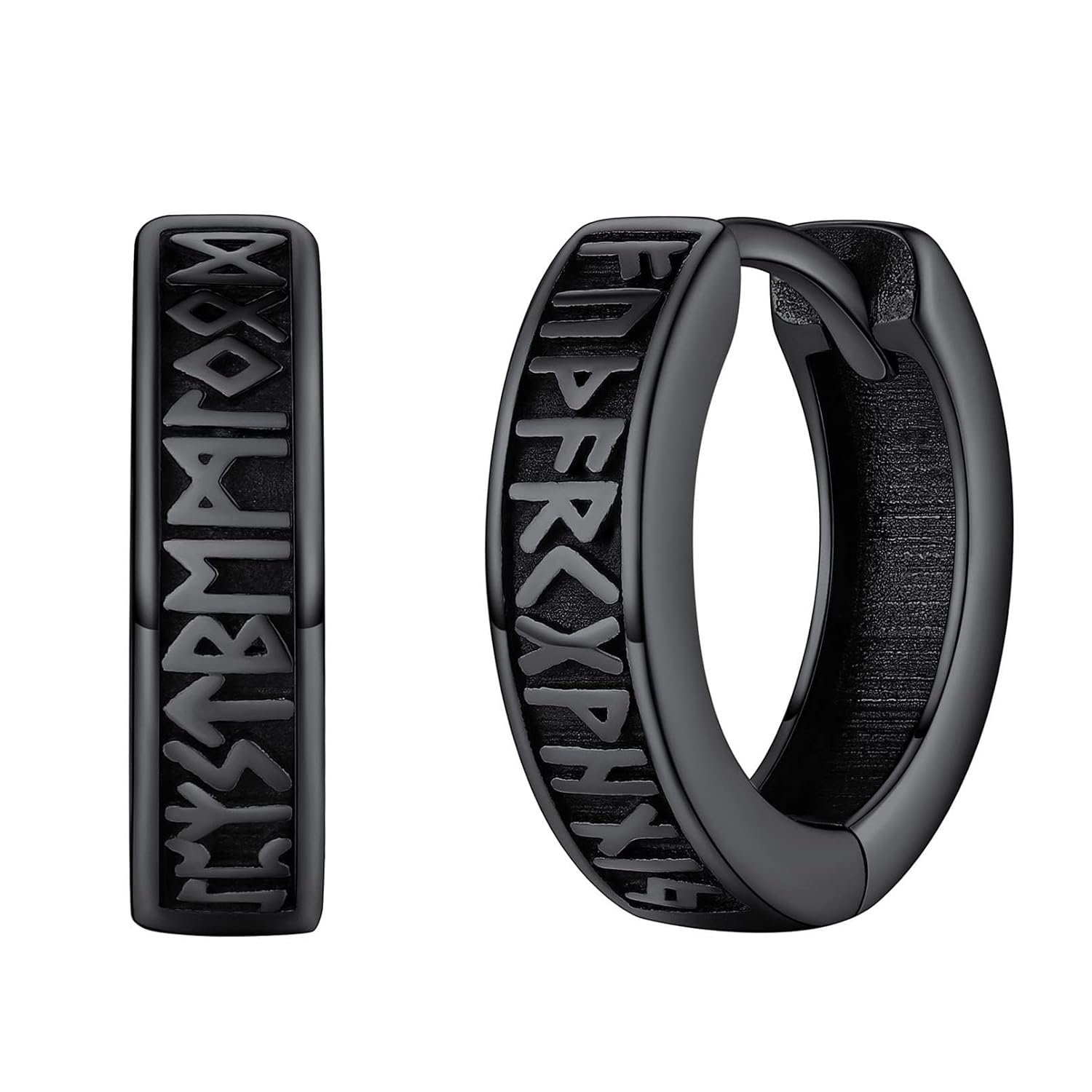 - Viking Rune Hoop Earrings: Ancient and mysterious norse viking runes, retro and traditional. The runes are clearly visible, echoing the earrings.
