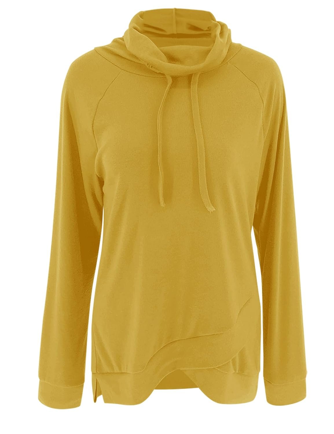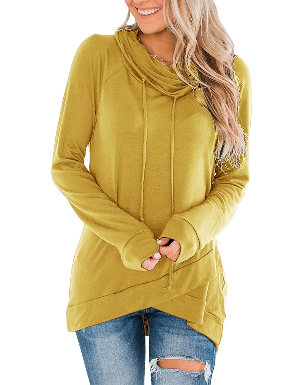 Fallorchid Womens Cowl Neck Tunic Tops Long Sleeve Pullovers Casual Drawstring Sweatshirts