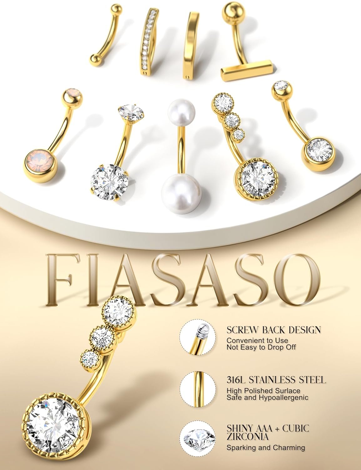 The designs are gorgeous, and the shine stays bright even after multiple uses. They look elegant and eye-catching while still being comfortable to wear. I also love that they’re versatile — they work not only for belly piercings but also for other body piercings, and they look just as good.