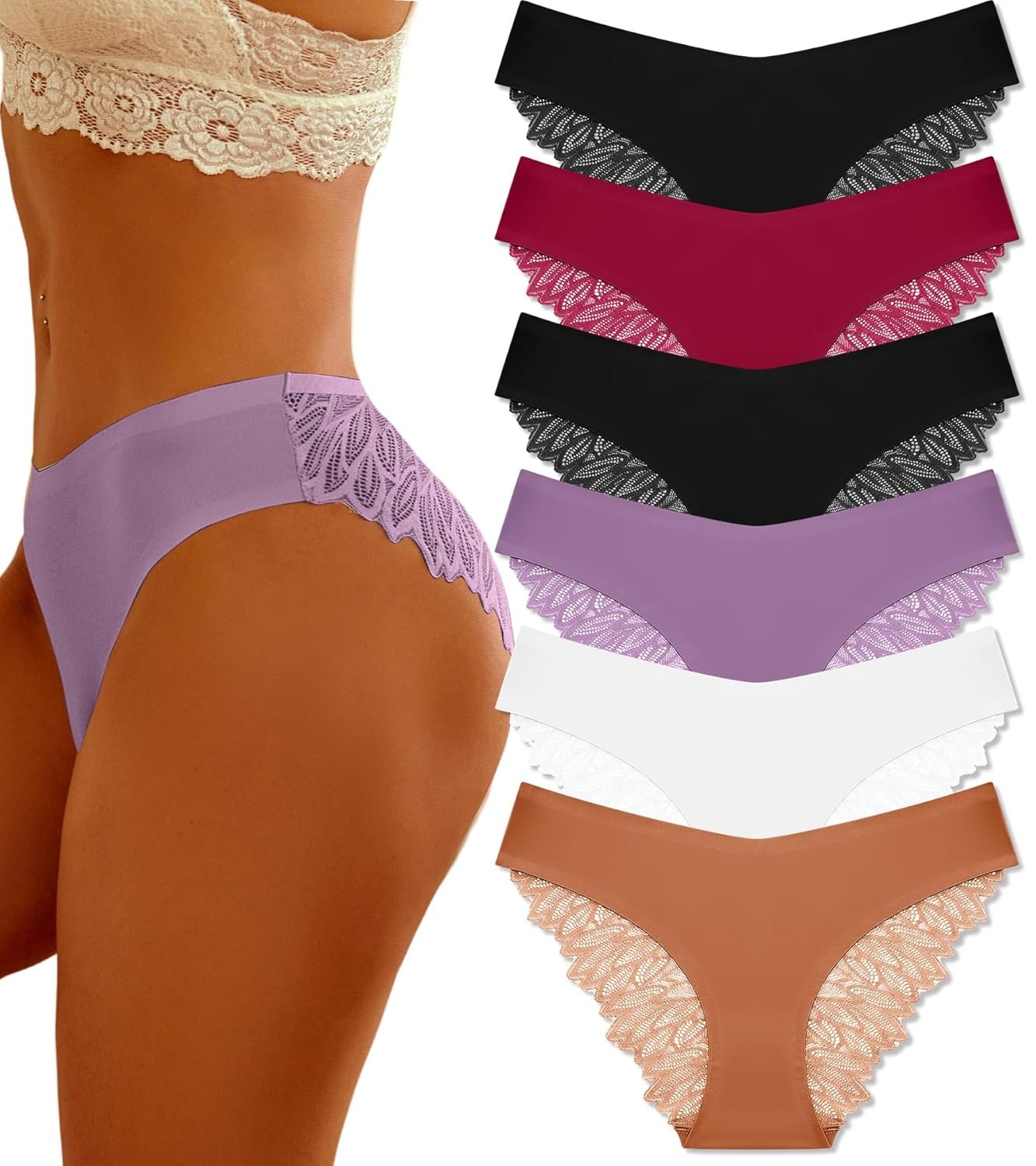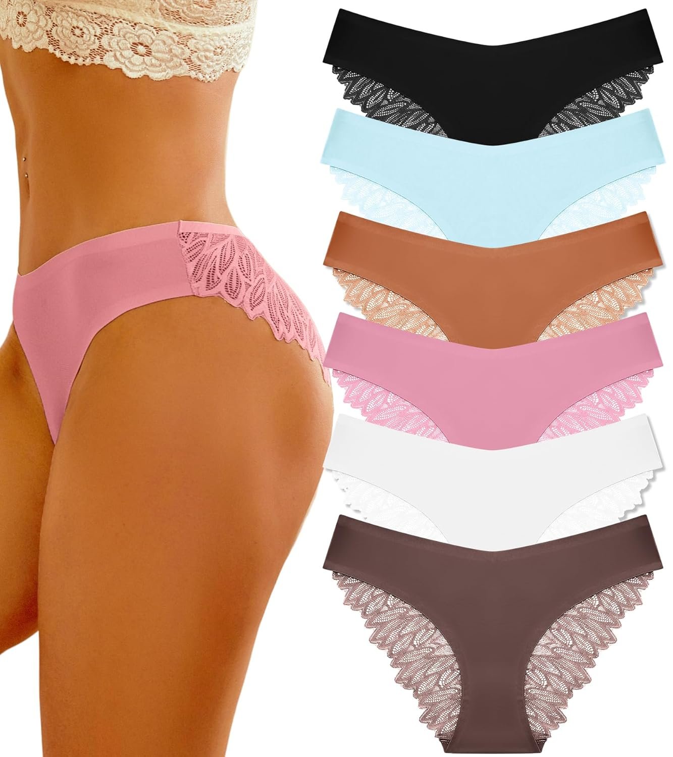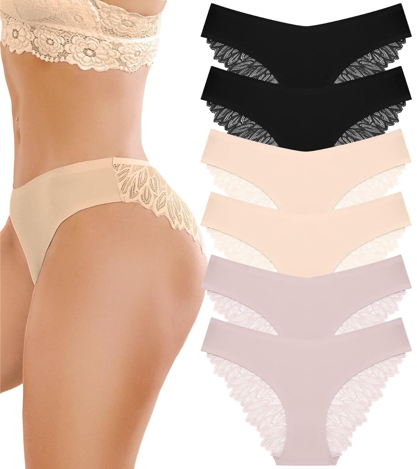 Disclosure40 reviews for FINETOO 6 Pack Sexy Underwear for Women Silky Seamless No Show Panties Ladies Lace Bikini Lightweight Cheeky Hipster
