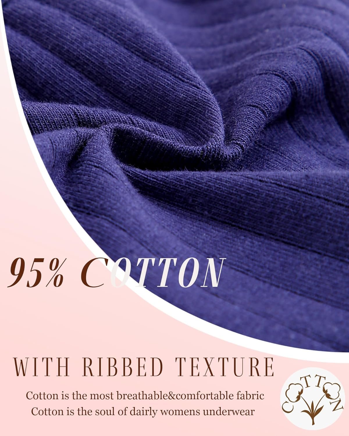 - Cotton Thongs for Women: 95% premium cotton, 5% spandex. Crotch inner lining: 100% cotton. Comfortable and breathable fabric with ribbed texture is more lovely and cute.