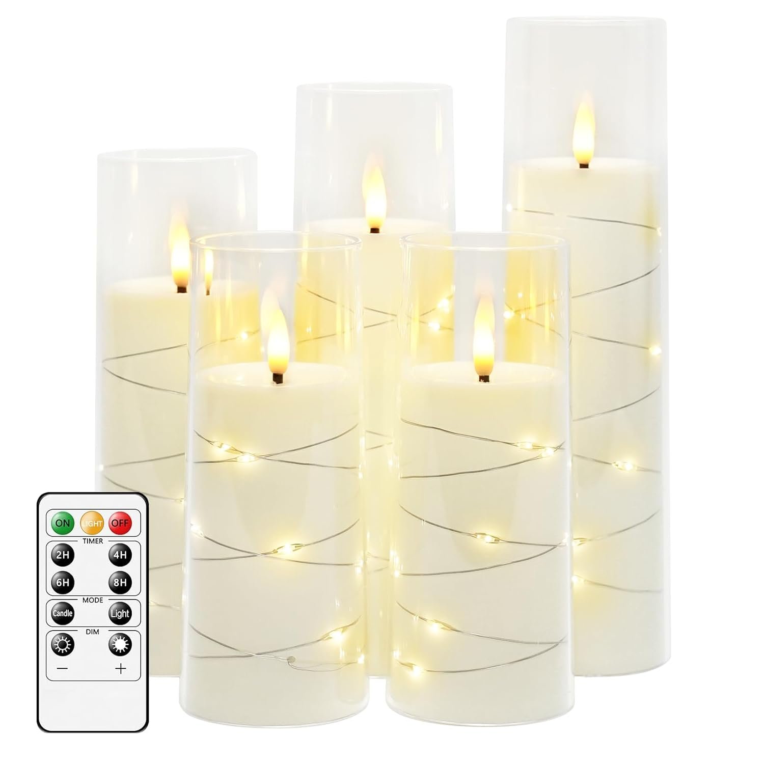 - 【Embedded String Lights】: Create a warm and inviting atmosphere with our pack of 5 flameless candles. These LED candles feature a built-in embedded light string that mimics the gentle flicker of real flames, adding a touch of elegance to any space.