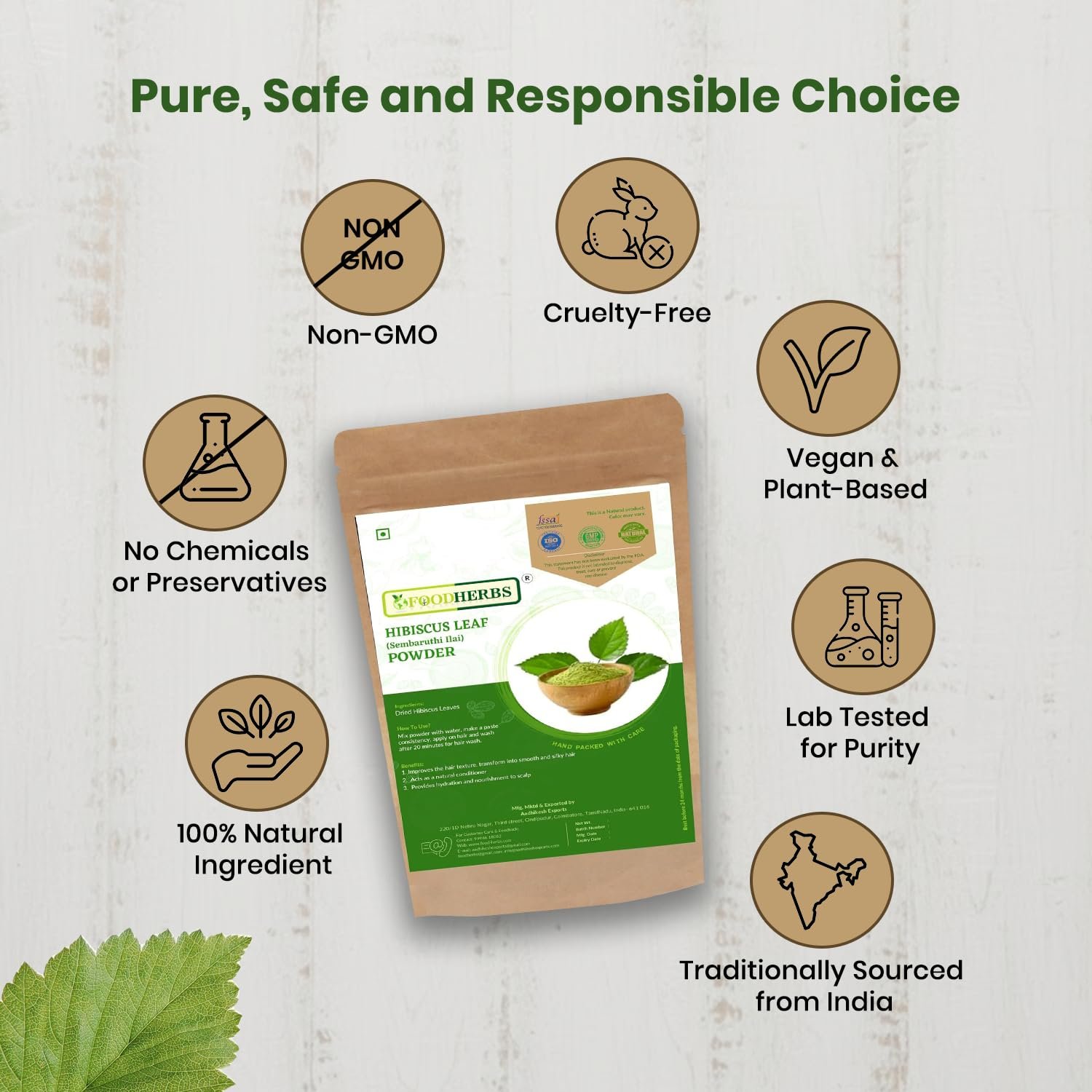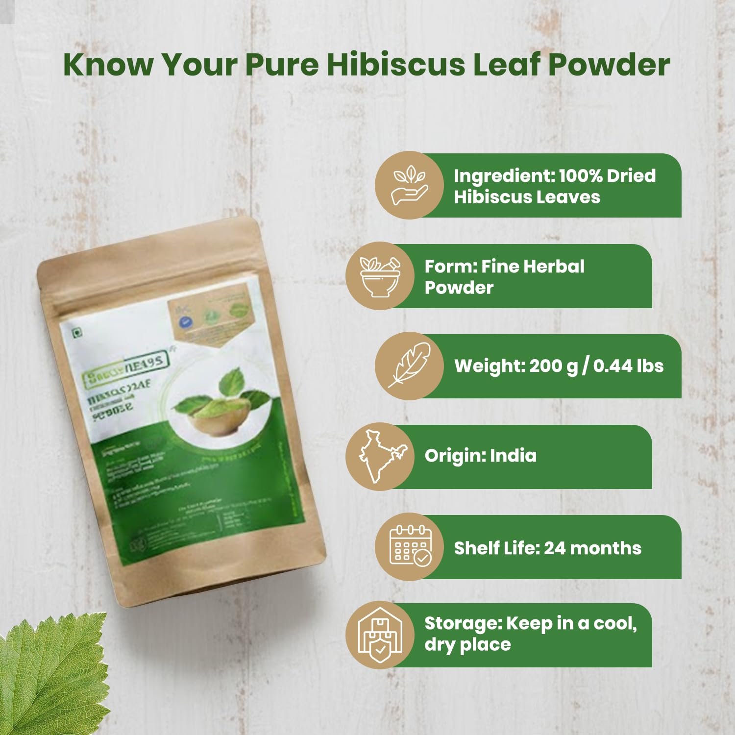 FOODHERBS Hibiscus Leaf Powder | 200 gms/0.44 lbs | Natural Hair Conditioner and Growth Promoter | Prevents Premature Graying and Hair Fall | Ideal for Homemade Shampoo