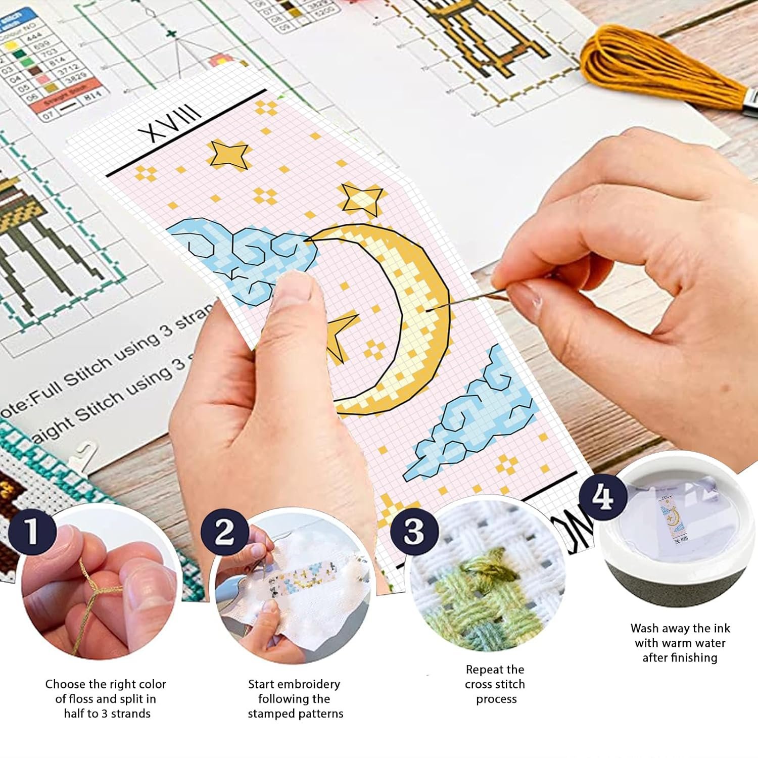 5 reviews for FREEBLOSS 6 Set Cross Stitch Bookmark Kit Stamped Cross Stitch Kit Tarot Cards Theme Embroidery Set with Instruction for Adults 8”*2.4”