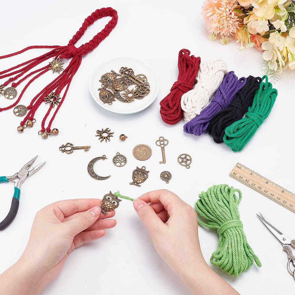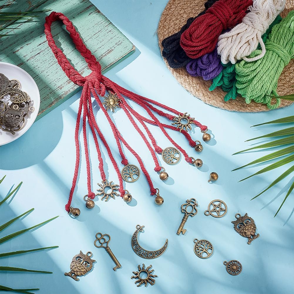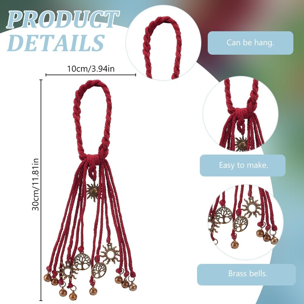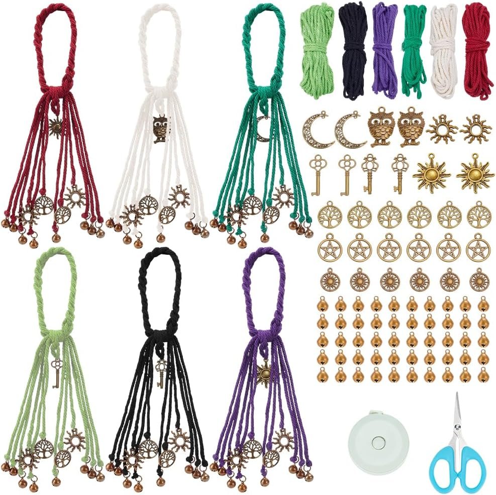 - 6 Set Witch Bells Kit: There are 6 colors of cotton rope, each 5 meters long; 12 pieces of hollow star themed accessories; 18pcs circular pendant; 50 small bells; Scissors; tape measure