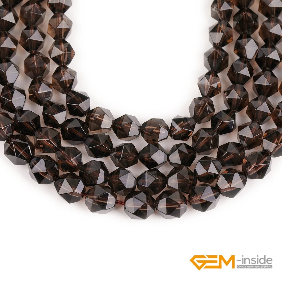 GEM-Inside Natural 8mm Smoky Quartz Gemstone Loose Beads Faceted Cambay Crystal Energy Stone Power for Jewelry Making 15″