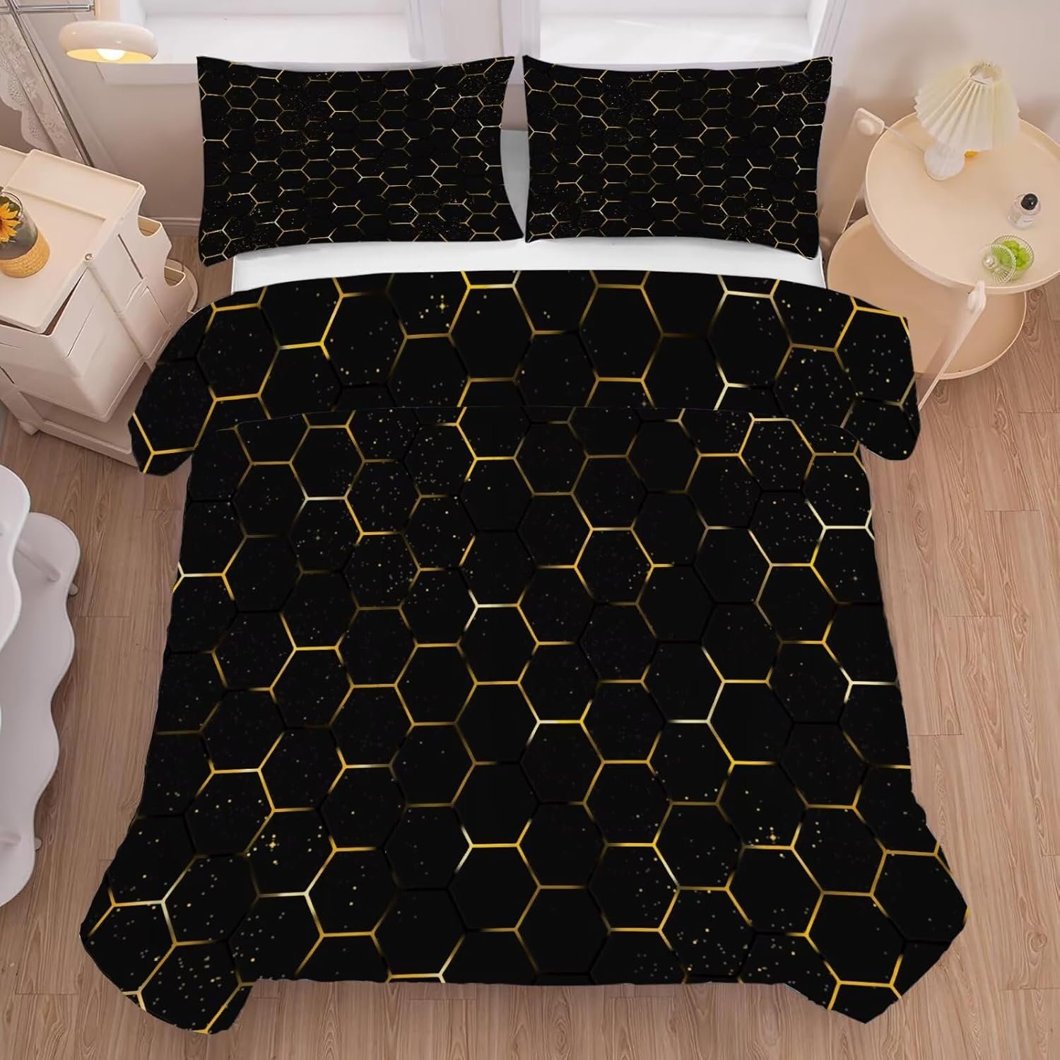 27 reviews for Geometric Comforter Set Twin Size Black and Gold Honeycomb Bedding for Kids Girls Boys Bedroom Decor Quilt Bed Sets, 1 Comforter 1 Pillowcase