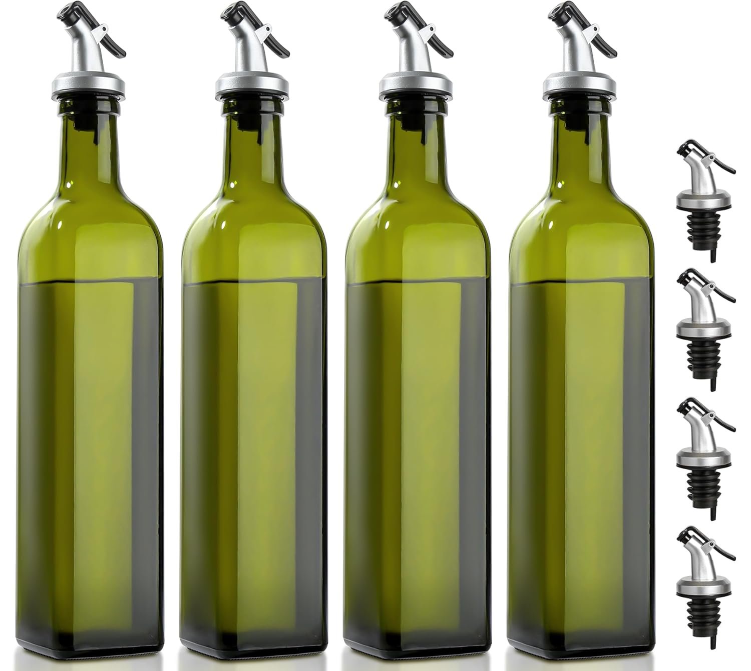 45 reviews for GMISUN Olive Oil Dispenser Bottle 4 Pack, Olive Oil Dispenser for Kitchen 17oz, Glass Cooking Soy Sauce Bottle Container Cruet with Plastic Pourer Spout, Green