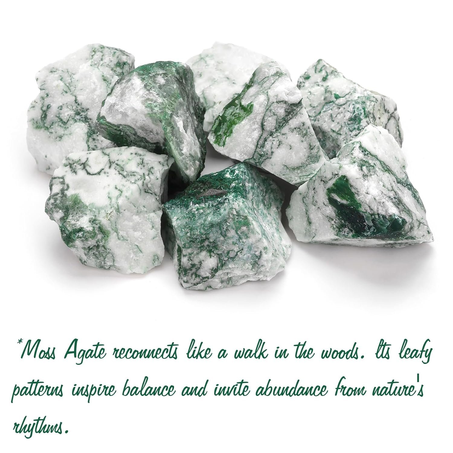 - Healing Crystal Stones: Moss Agate reconnects like a walk in the woods. lts leafy patterns inspire balance and invite abundance from nature’s rhythms.