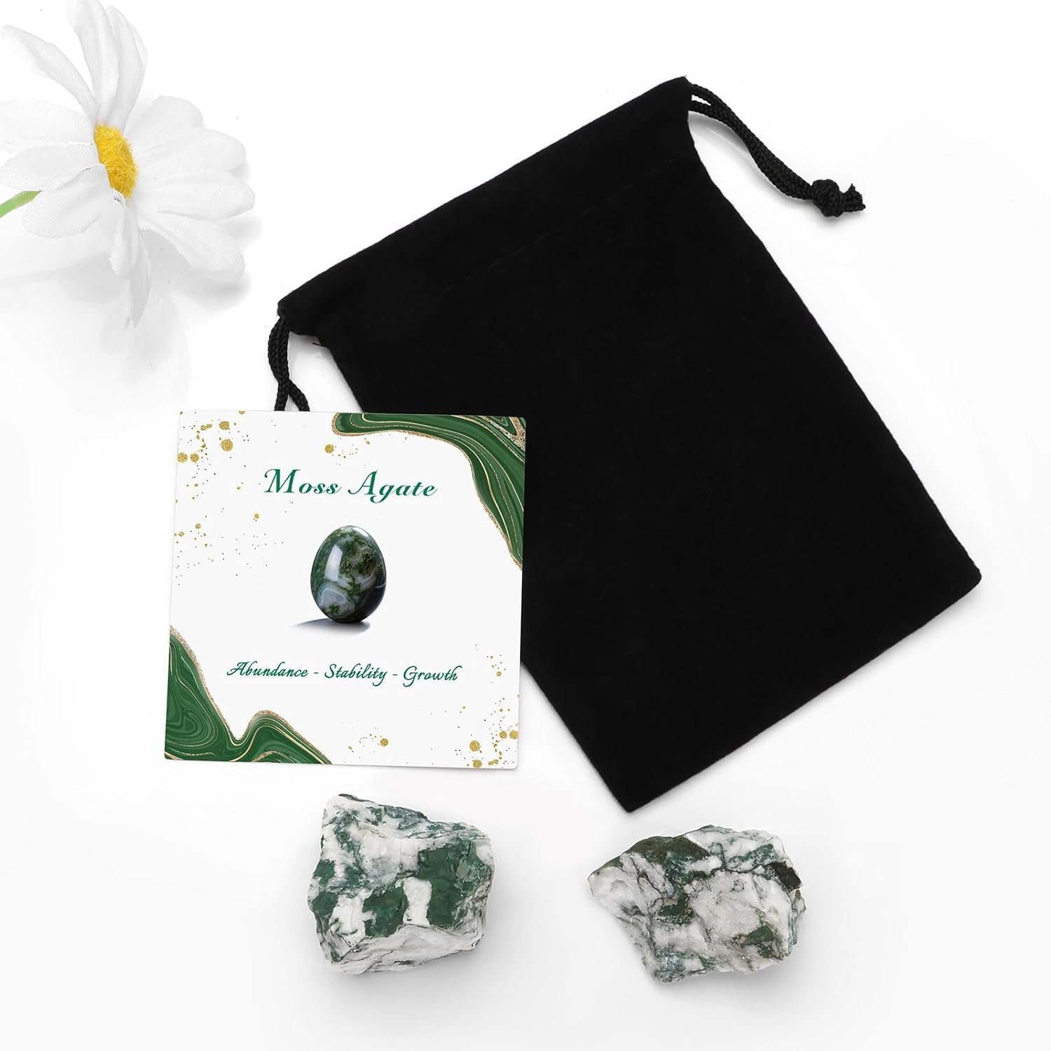- You will receive 2PCS natural Moss Agate raw stones and a helpful information card. Natural rough rocks could be a unique gift for yoga, meditation lovers, crystal collectors and crystal beginners for birthdays, christmas.