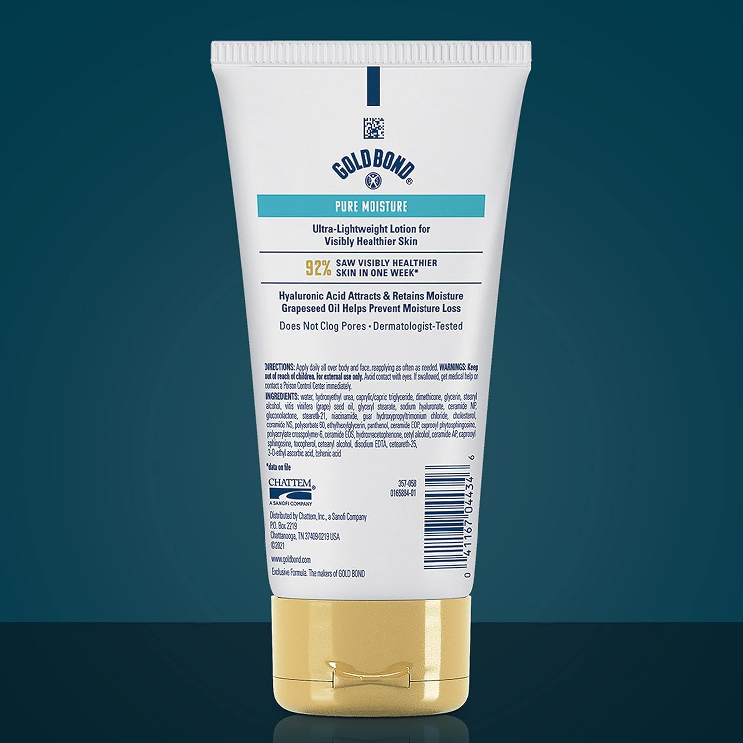 - Includes one (1) 5.5-oz. tube of Gold Bond Pure Moisture Lotion, Ultra-lightweight Daily Body and Face Lotion