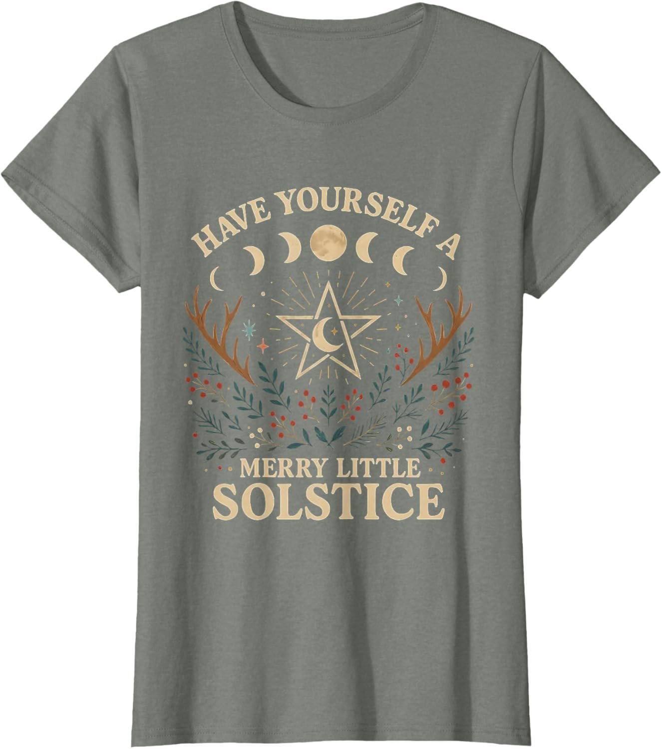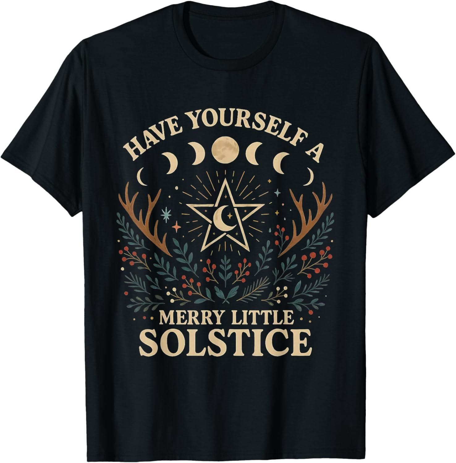 - Beautiful solstice design featuring a pentagram wreath with evergreens, pinecones, berries, antlers, and the quote “Have Yourself a Merry Little Solstice.†Perfect for pagans, Wiccans, nature lovers, and winter solstice fans.