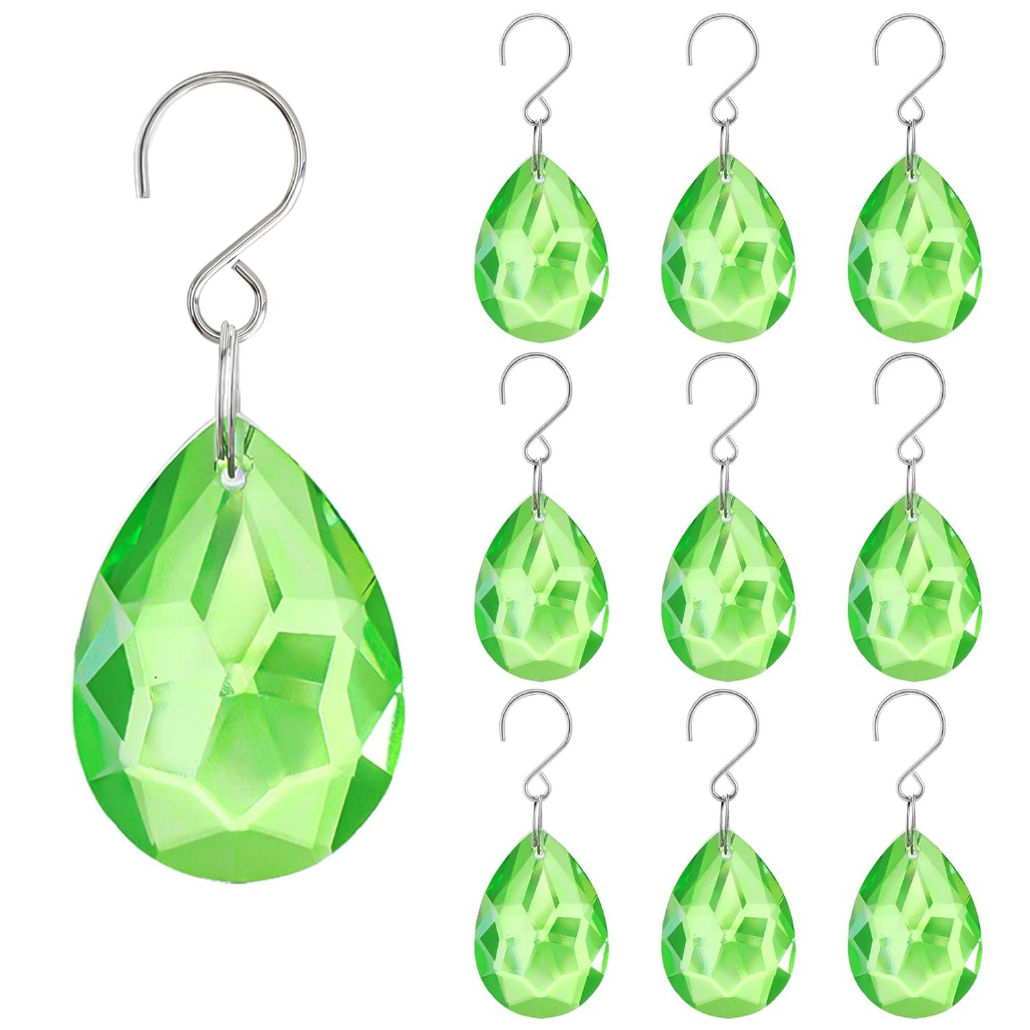 - Specifications: Color: Green;Material: K9 Crystal;Total Size: 65×27×12mm (2.5×1×0.47″);Package: 10 Crystal Beads