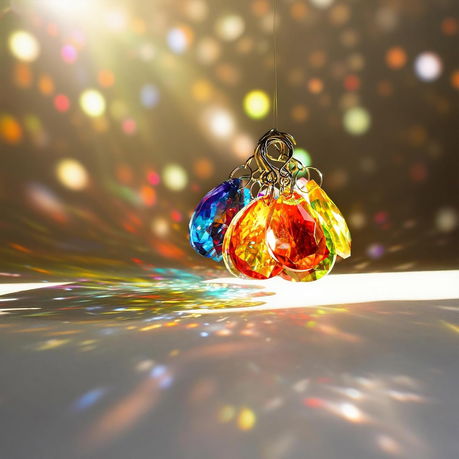 Sieht super schön aus, viel besser als auf den Bildern. Ich habe die Kristalle an ein Holz gehängt und in die Küche, weil wir da morgens am meisten Sonne haben. Die ganze Küche hat jetzt kleine Funkeln 🙂 Habe mit Chat Gpt ausgerechnet wie viele Kristalle und welche Größe ich für unsere Küchengröße brauche um so viele bunte Funkeln wie möglich zu haben.