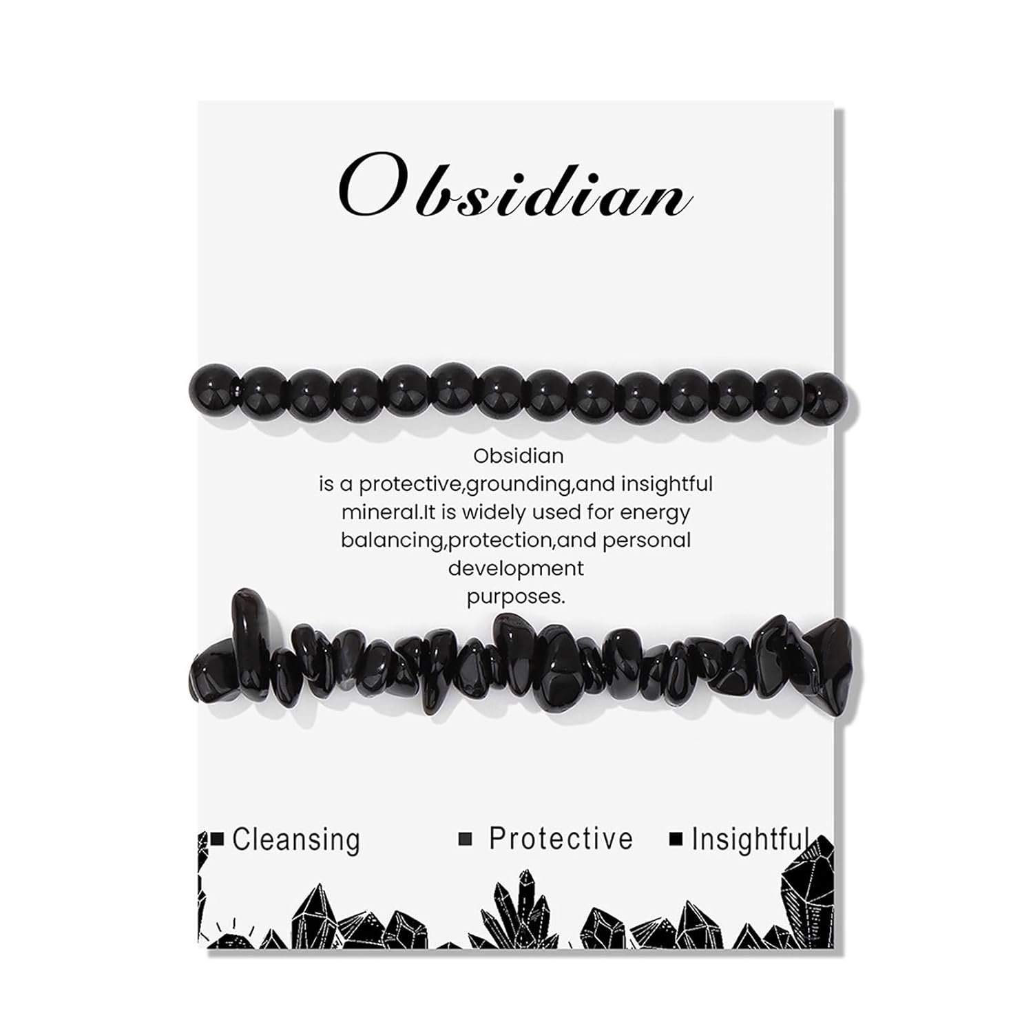 - Set of 2: Package contains: 6mm black bead bracelet and 8mm raw black obsidian bracelet. Our black crystal bracelets for women come with an upscale jewelry box, the brochure with explanation of various stones included.
