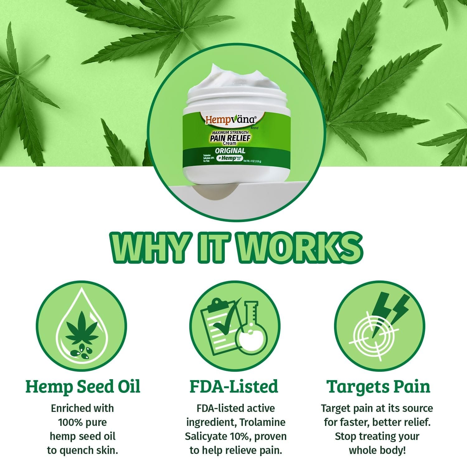 - HEMP SEED OIL: our original pain relief cream is enriched with ultra-moisturizing Hemp Seed Oil