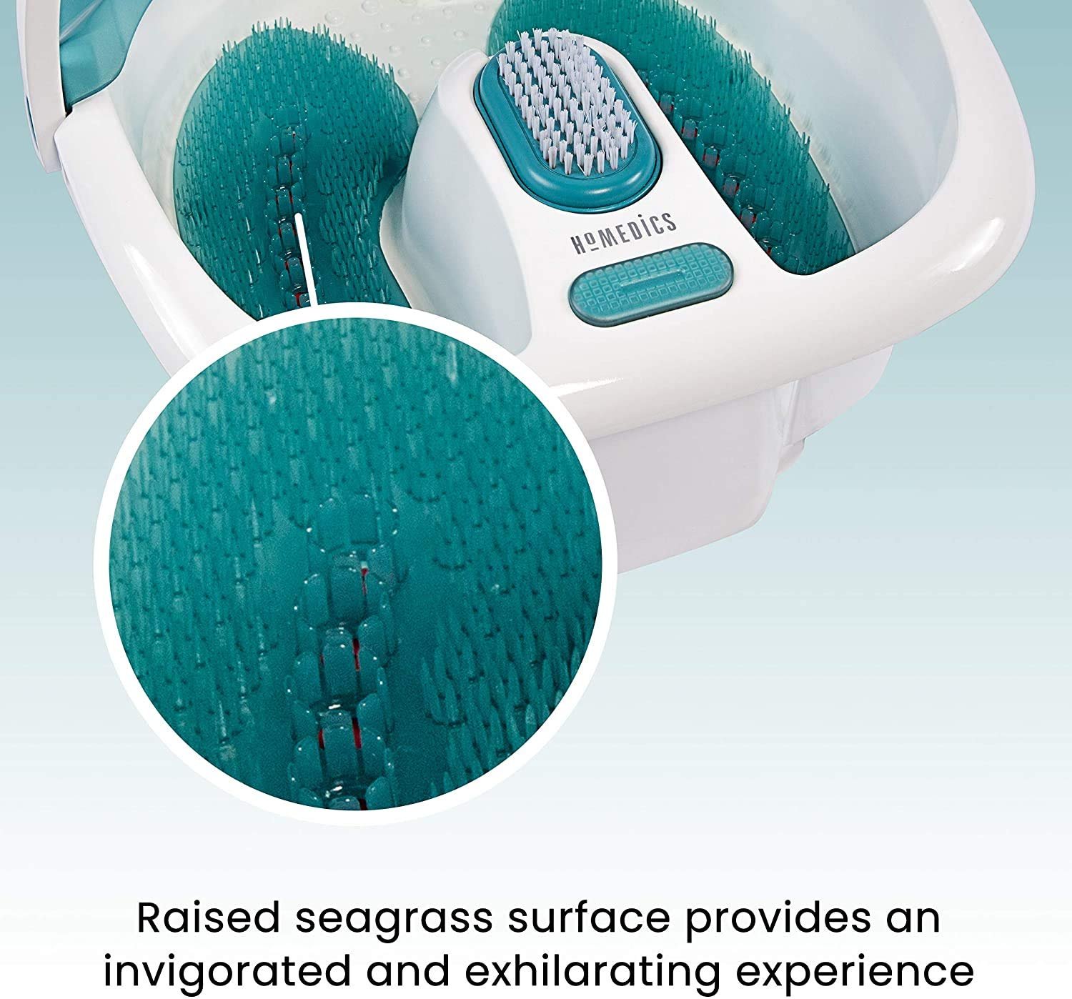 - COMFORT DESIGN: The Bubble Spa Elite Footbath features a sensuous sea grass surface that provides a stimulating surface that soothes and rejuvenates your feet. It also has an easy-tote handle and splash guard to prevent splashes and spills