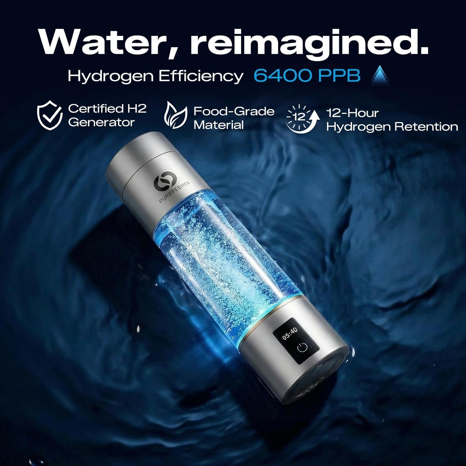 - β γππππ ππππππππ πππππ ππππγ Start your day with a clean boost. This Hydrogen Water Bottle uses advanced SPE/PEM electrolysis to fill every sip with pure molecular hydrogenβup to 6400PPB. Itβs fresh, smooth, and energizing, like drinking clean mountain air in a bottle.