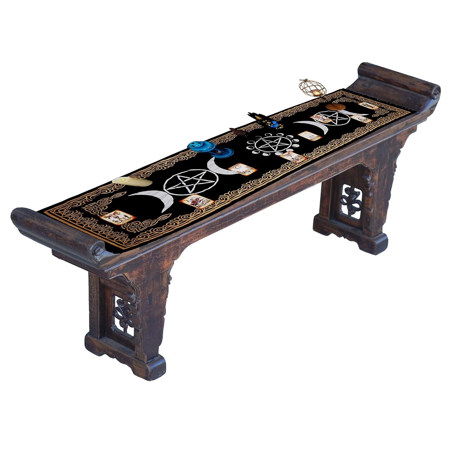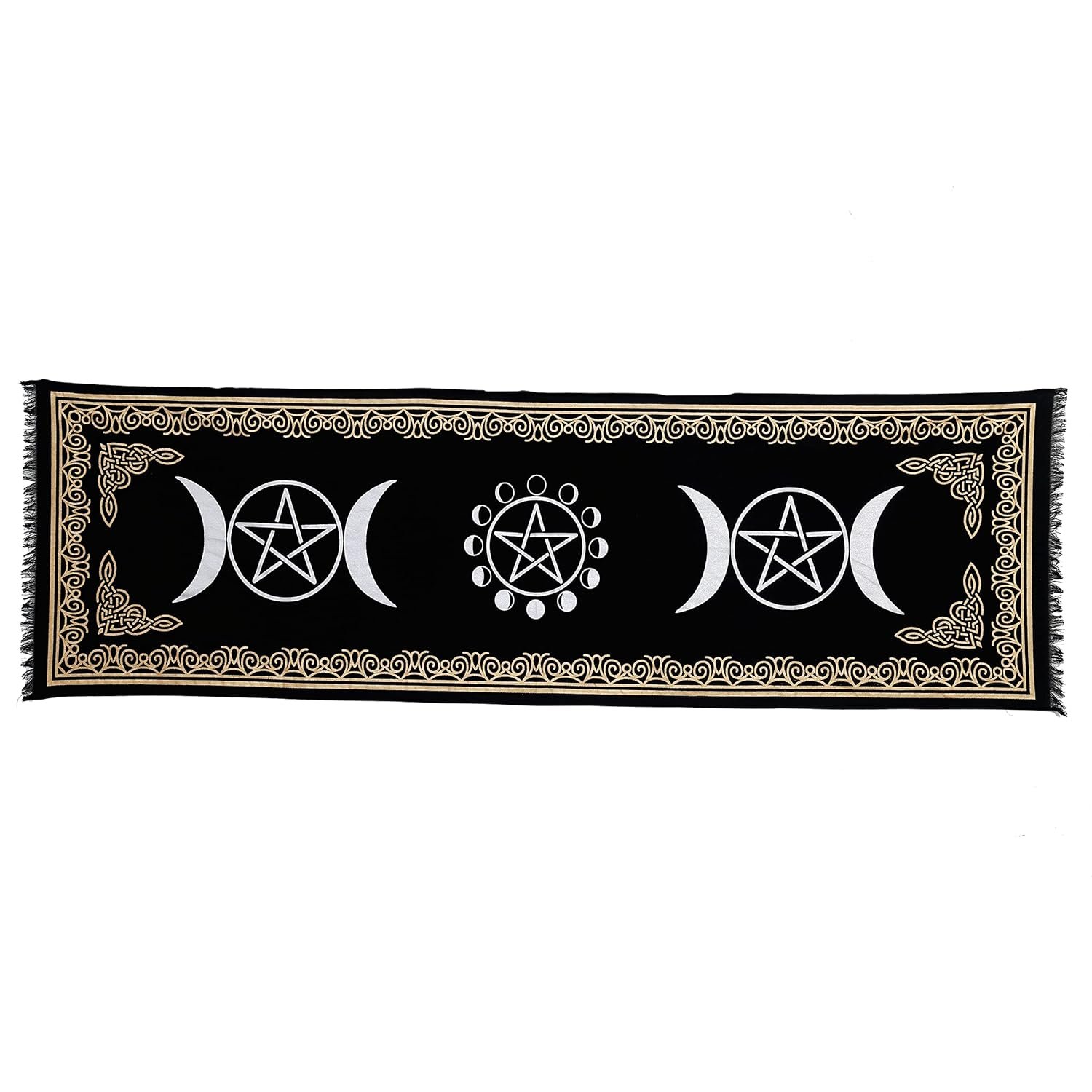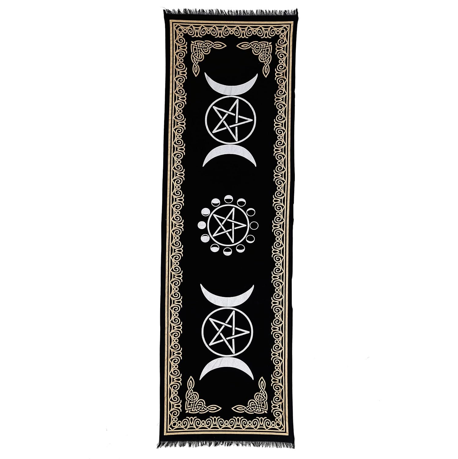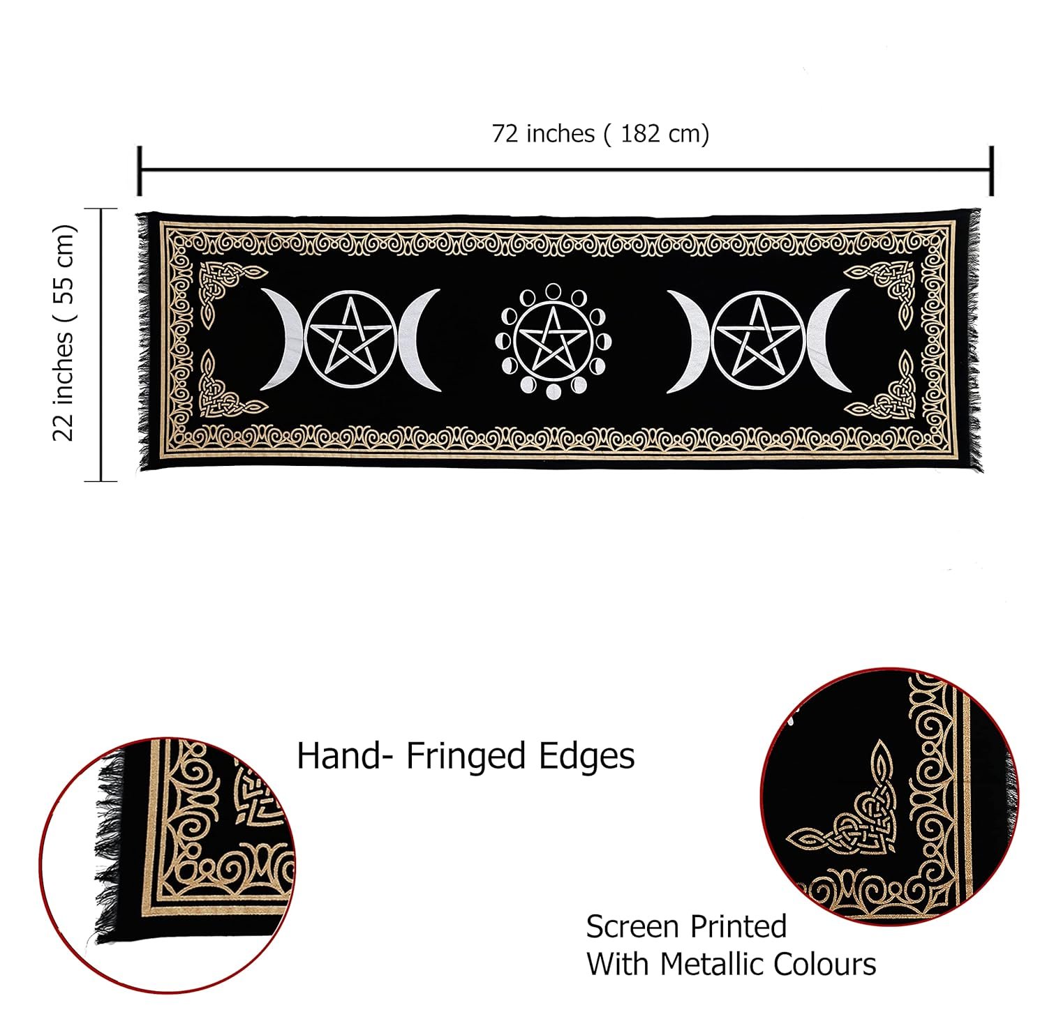 Indian Consigners Altar Cloth Witchcraft Moon Phases Triple Moon Long Side Tablecloth for Spiritual Use