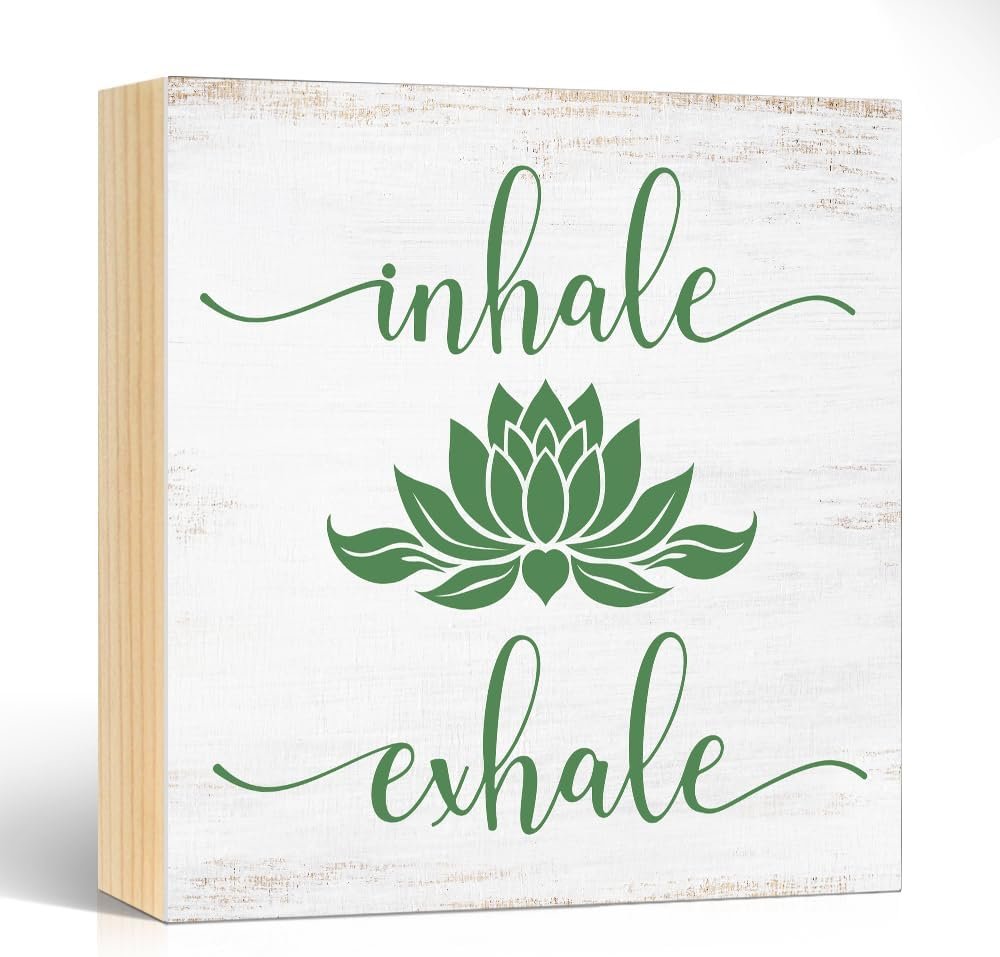 Inhale Exhale Wooden Box Sign, Inspirational Gifts for Women Friend Coworker, Funny Lotus Wood Box Sign Decor for Home Office Farmhouse Bedroom Yoga Spa Room, Meditation Gifts…