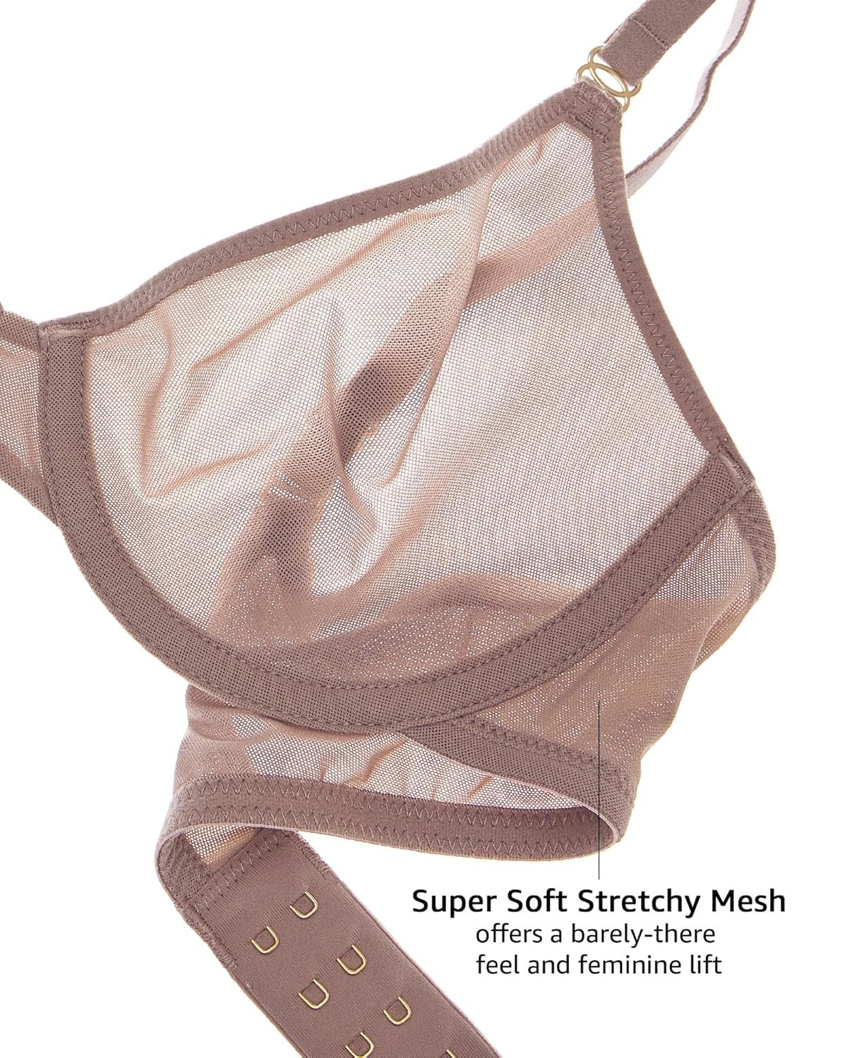 - Sheer unlined bra with Underwire provide a naturally lift