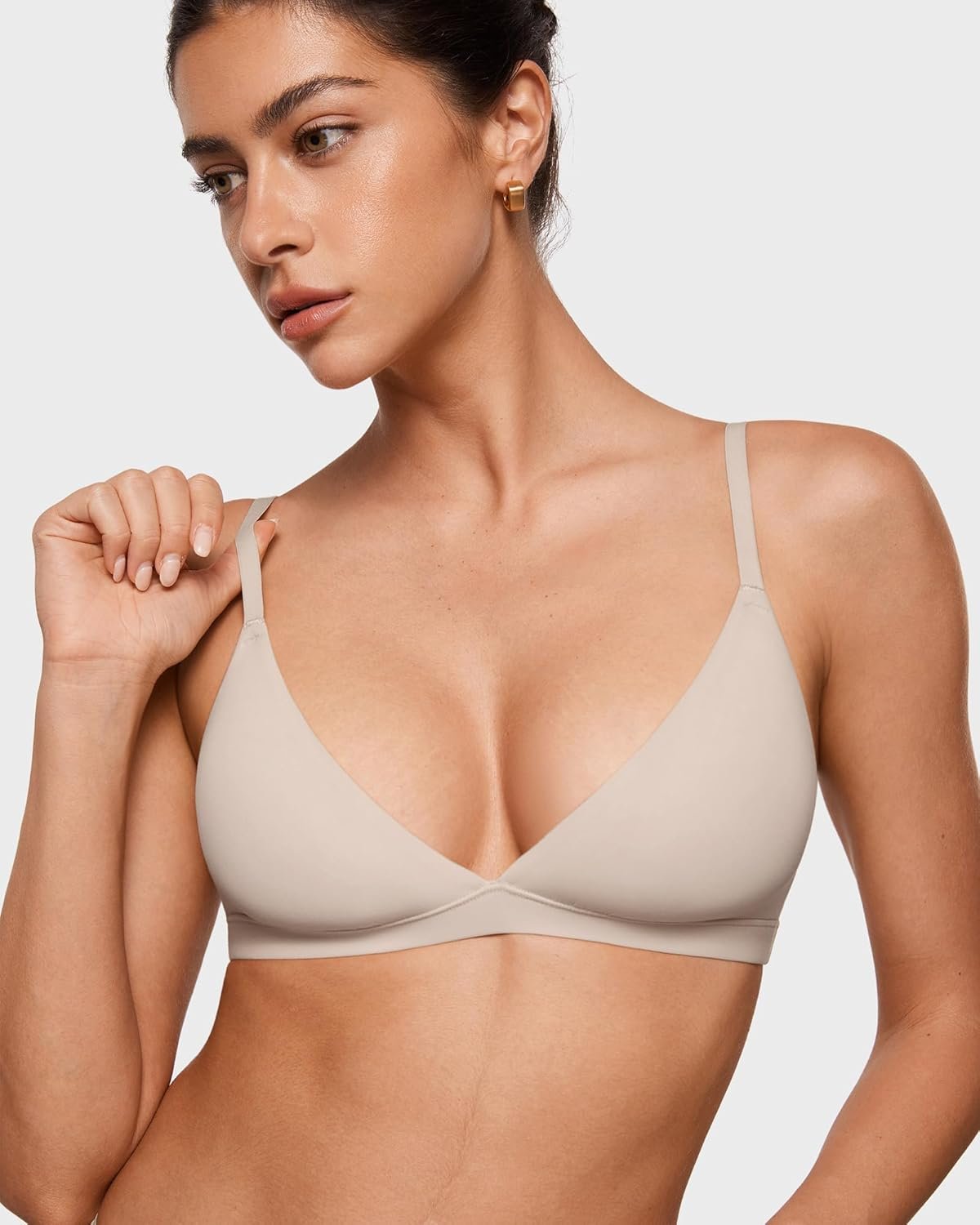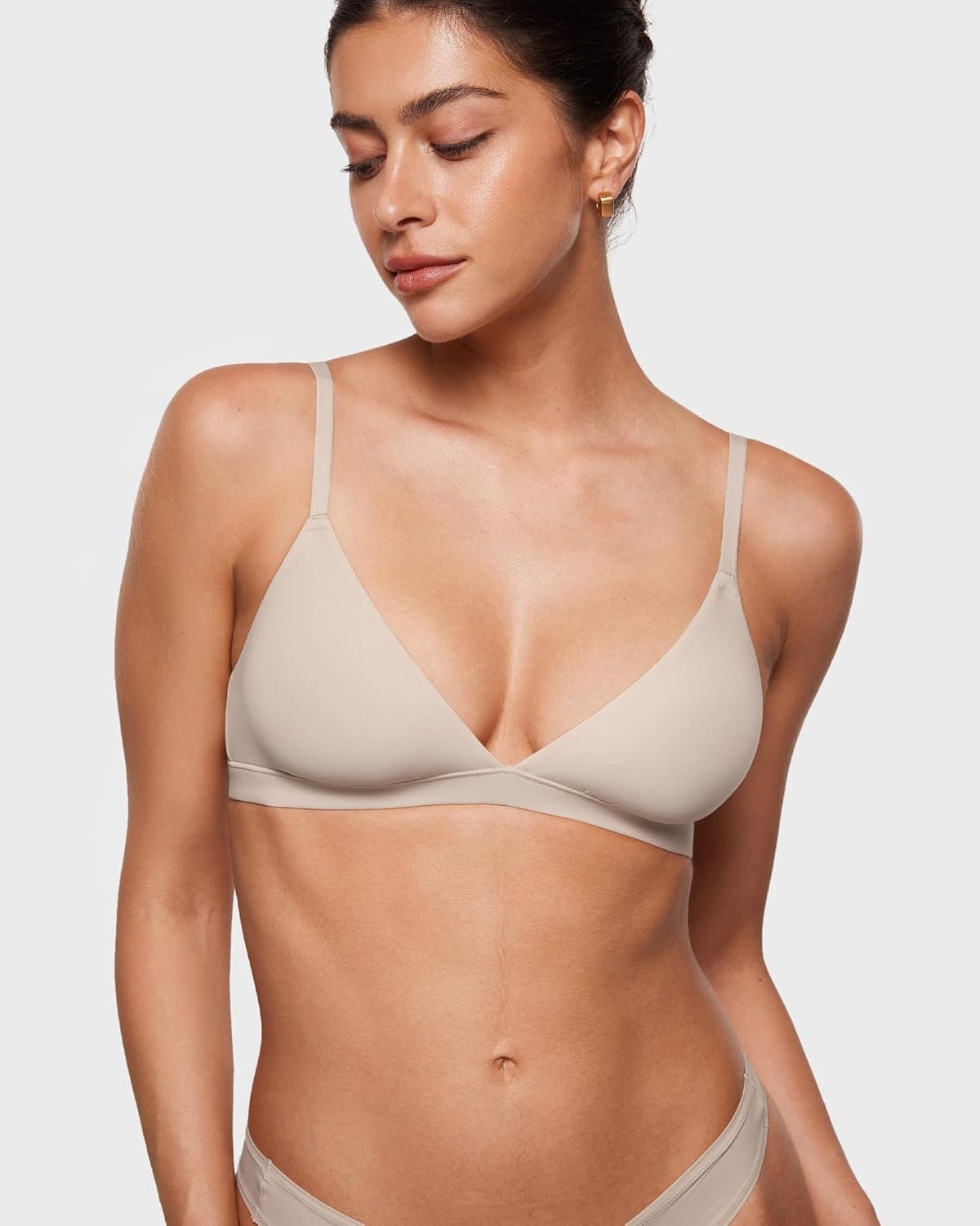18 reviews for INLYRIC Women’s Inbarely Triangle Bralette Plunge Unlined Seamless Bra No Underwire Sexy Comfortable Everyday