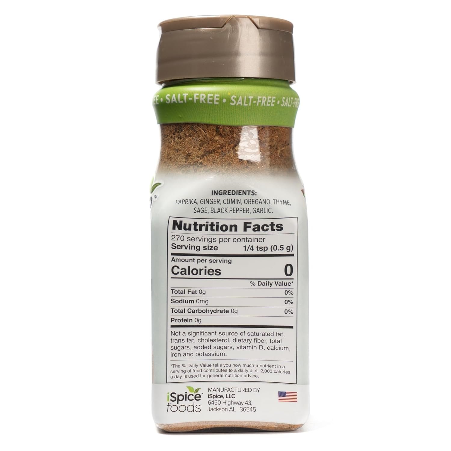 Salt free! Very hard to find spices without salt. I especially love this on roasted vegetables. Adds just enough seasoning.