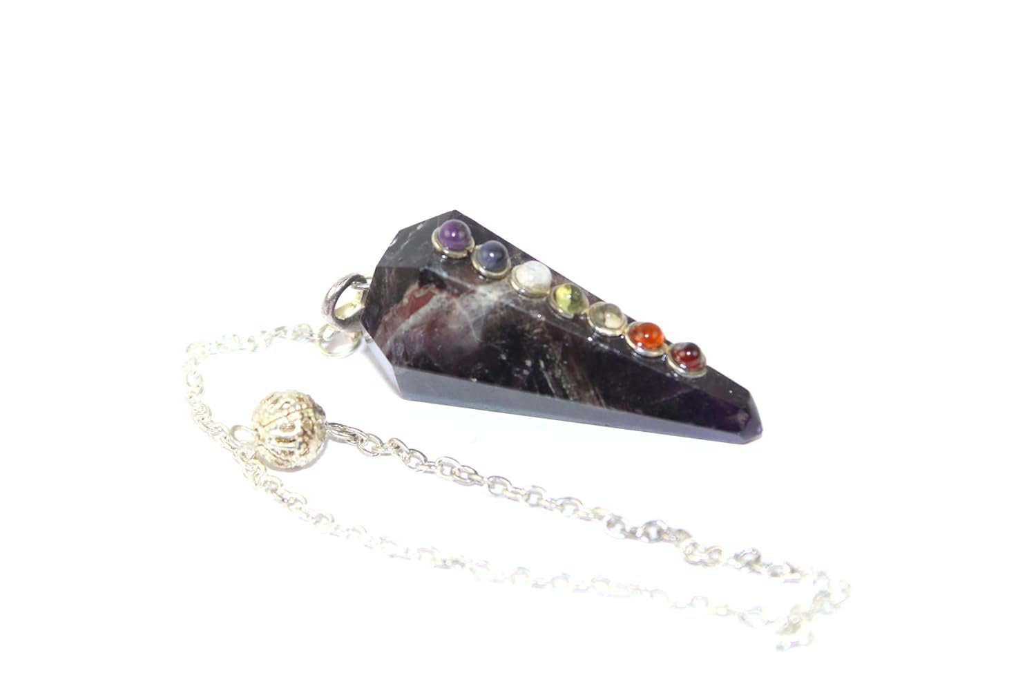 - Natural Amethyst Cone Pendulum – Crafted from genuine Amethyst crystal with chakra beads, this pendulum is perfect for energy healing, spiritual practices, and divination.