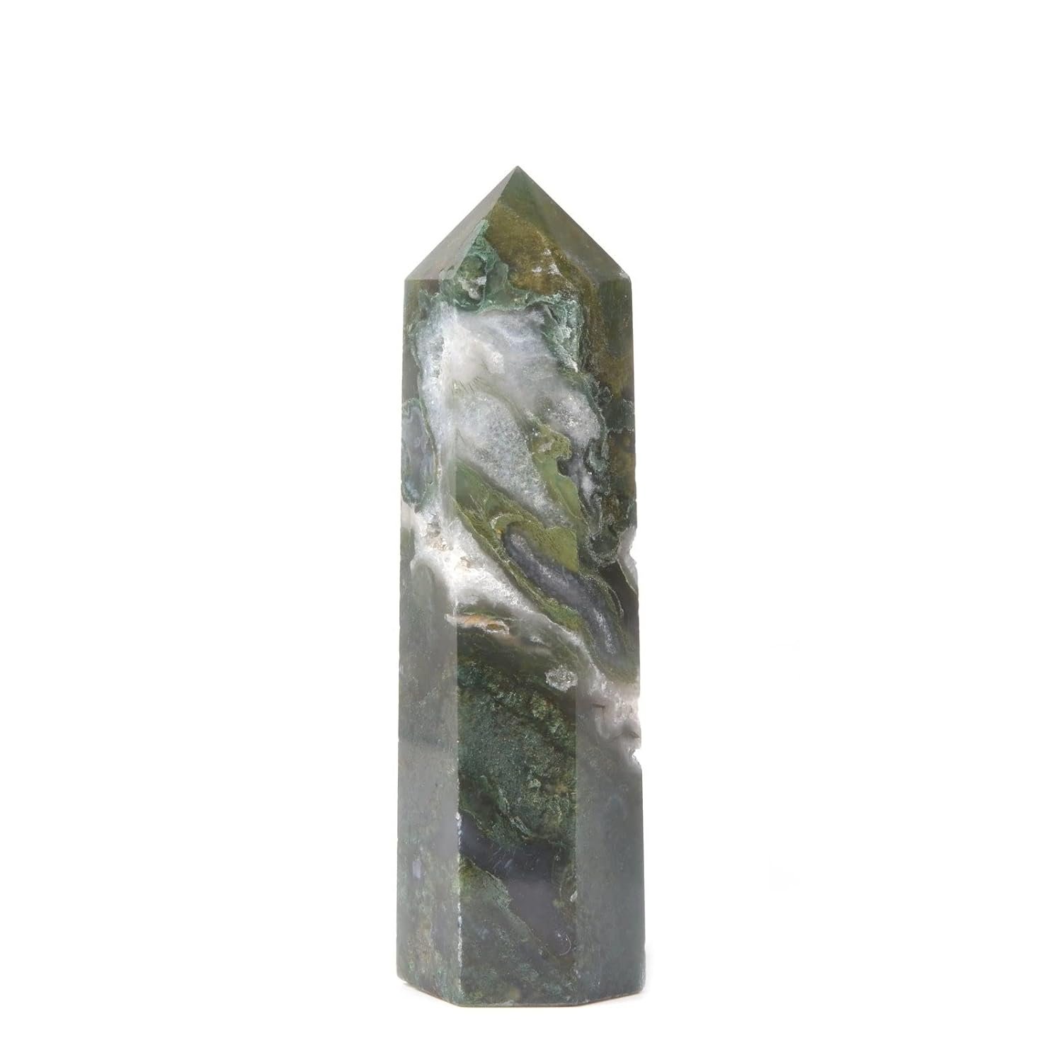 Justinstones Large Moss Agate Crystal Tower Healing Crystal Wand for Spiritual Use Hexagonal Point Reiki Chakra Gemstone Home Decor