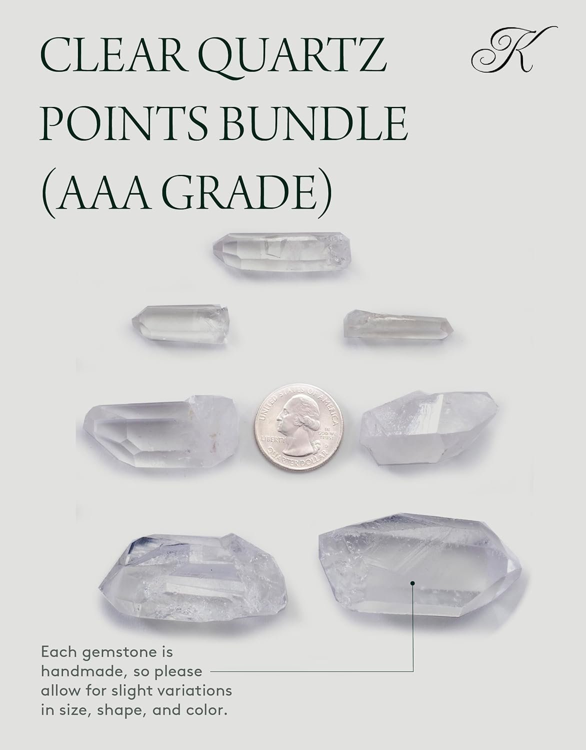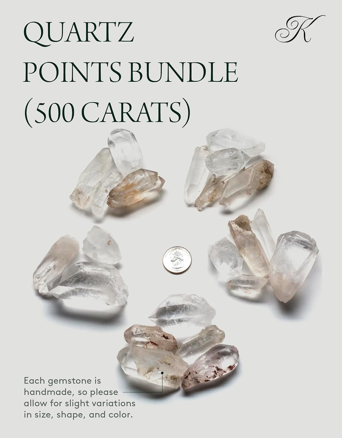 KALIFANO Quartz Points Bundle (500+ Carats) – Bulk High Energy Raw Lemurian Reiki Cuarzo Crystal Used for Clarity and Purpose – Information Card Included (Family Owned & Operated)