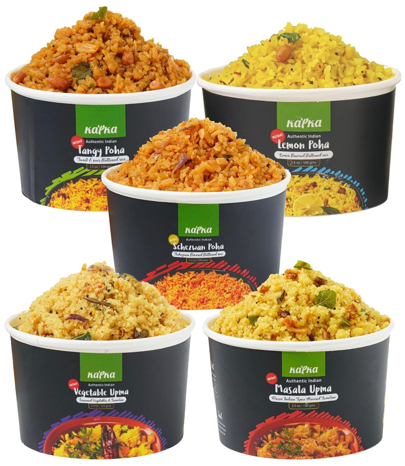 Kapka Assorted Variety Indian Meals – 5 Pack – Ready to Eat Authentic Vegan Prepared Food – Just Add Water – Microwaveable Plant-Based Snacks for Breakfast, Lunch, Non-GMO, No…