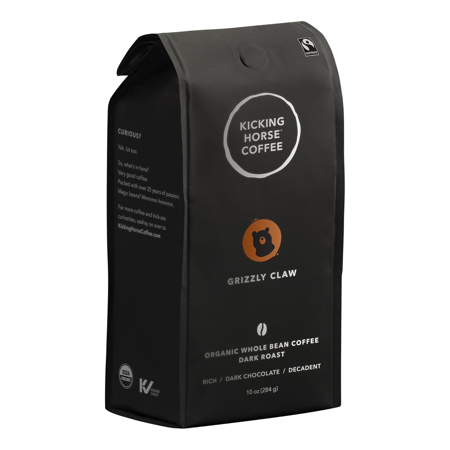 Kicking Horse Coffee, Grizzly Claw, Dark Roast, Whole Bean, 10 Oz – Certified Organic, Fairtrade, Kosher Coffee