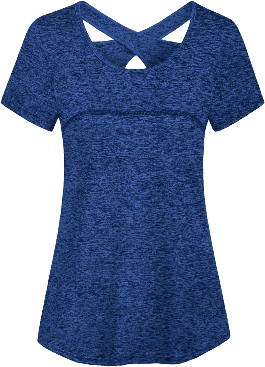 Kimmery Woman Short Sleeve Round Neck Criss Cross Back Yoga Shirt