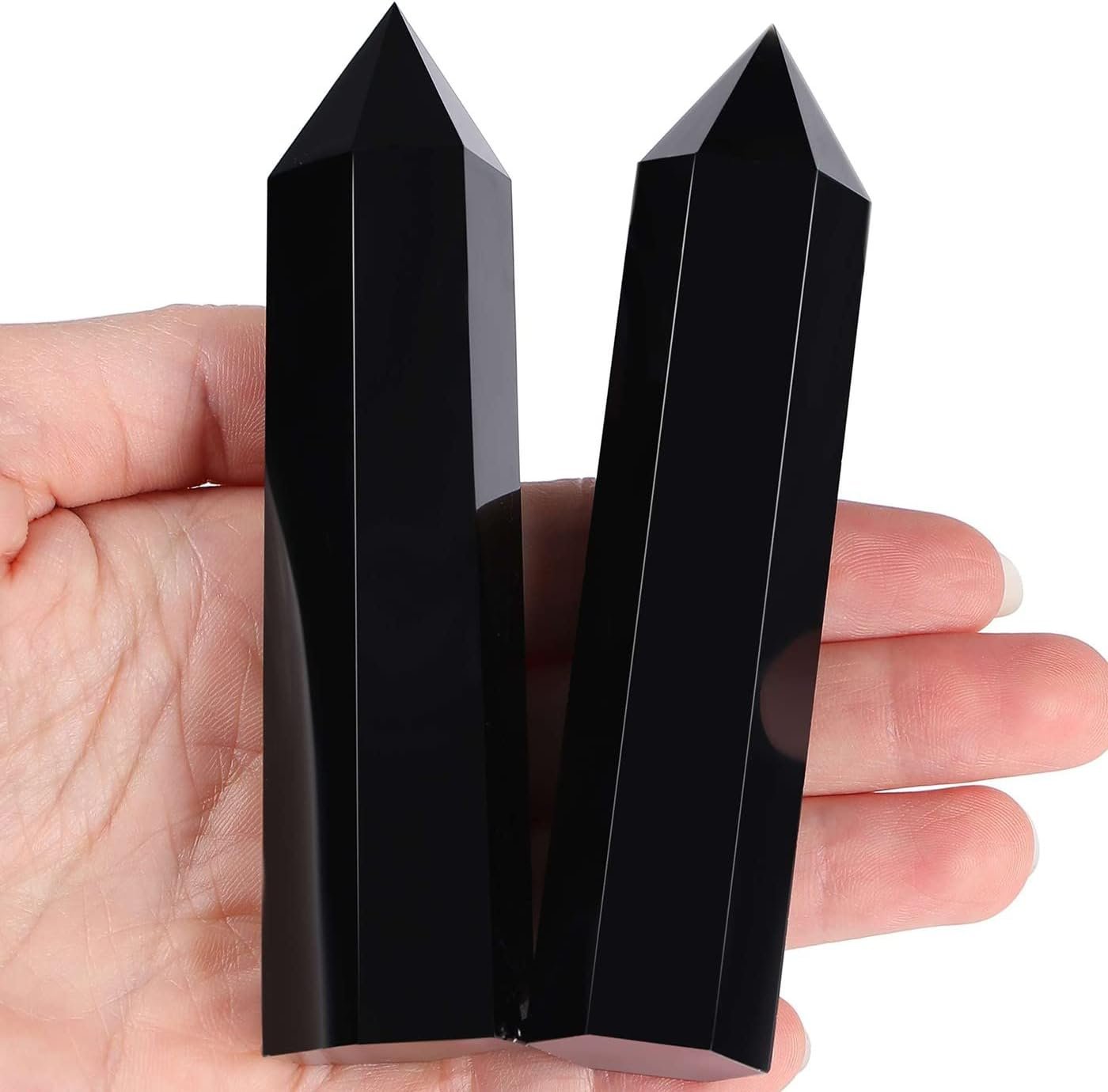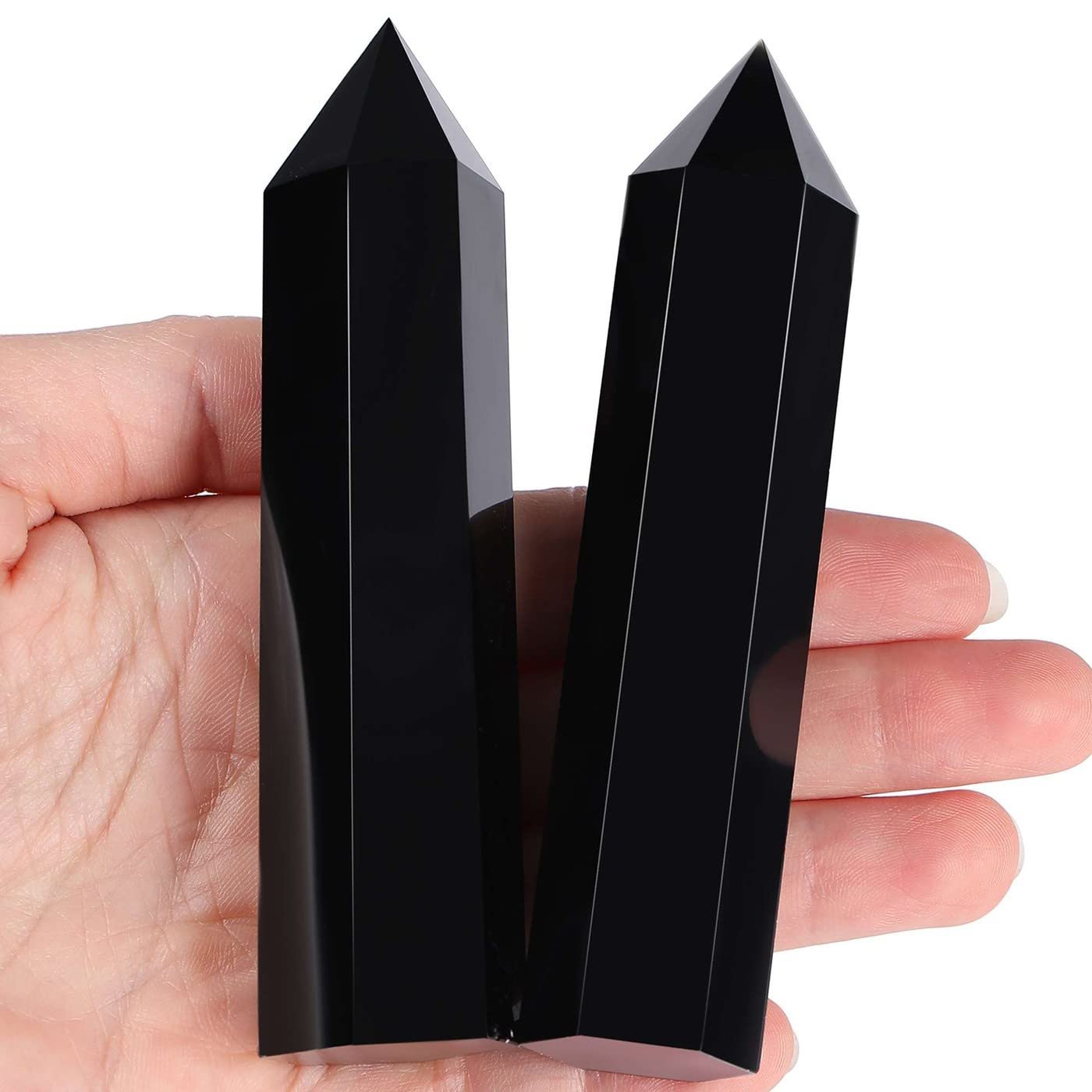 LAIDANLA Obsidian Healing Crystals Wands 3.5-4″ Polishing Natural Reiki Energy Wand Stone Hexagonal Point Large Crystal Gemstones for Meditation Therapy Crystal Grid Decoration…