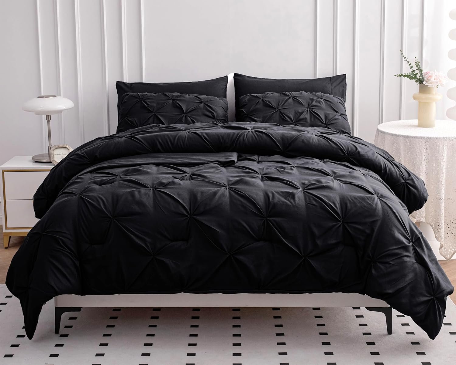 LANE LINEN Queen Comforter Set, 7 Piece Queen Size Bedding Set, Black Comforter with Sheets, Pillowcases & Shams – Pintuck Style