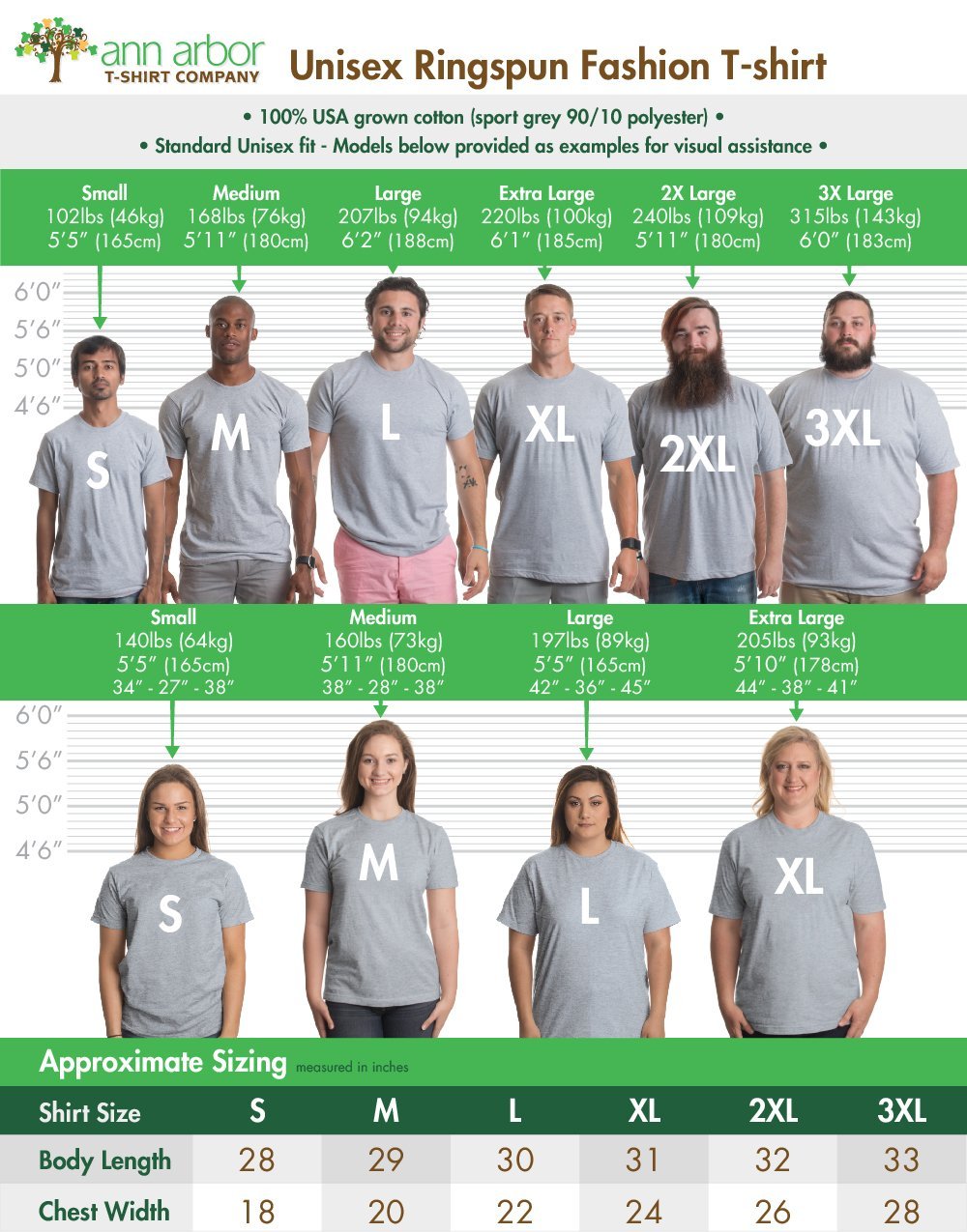 These shirts are great. I was worried because I bought three without knowing how they’d look/fit but I’m happy. A large is the same size 90% of the large tees in the world are, the graphics look good and they’re really soft, comfortable fabric. I’ll be buying a ton more from Ann Arbor