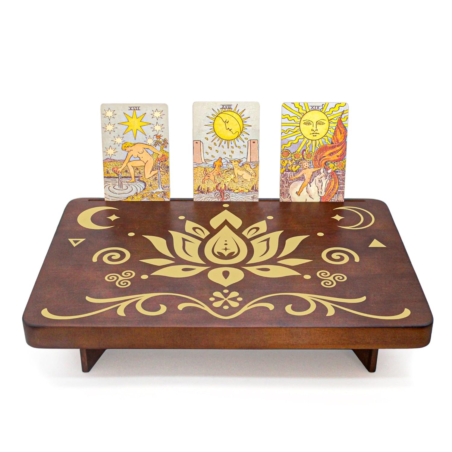 - Lotus InPurpose & Spiritual Use: A sacred wooden altar designed for rituals, meditation, and divination. Features moon phase carvings and Tree of Life motif to enhance spiritual practice. The Moonlight Altar Table with Tarot Card Holder