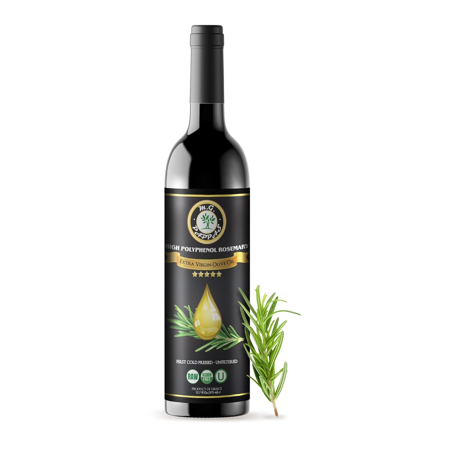 M.G. PAPPAS Rosemary Infused Olive Oil – High Polyphenol Rich Extra Virgin Olive Oil Unfiltered – Over 500mg/Kg – Cold Pressed Greek EVOO Award Winning – Rosemary Oil Cooking…